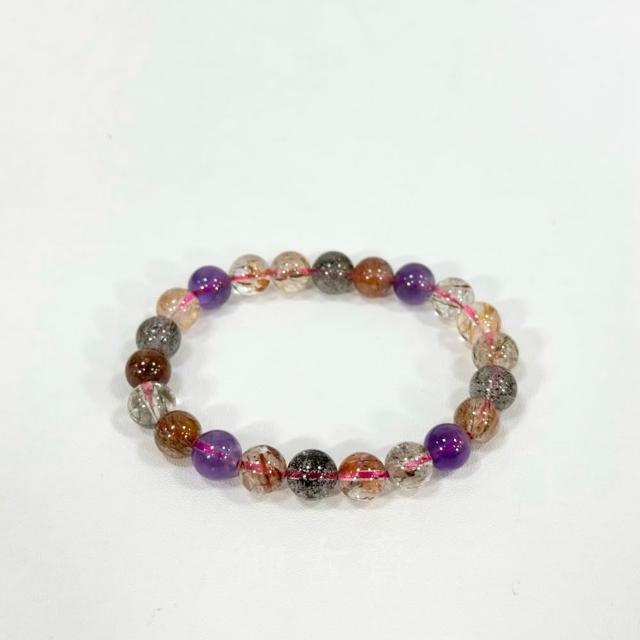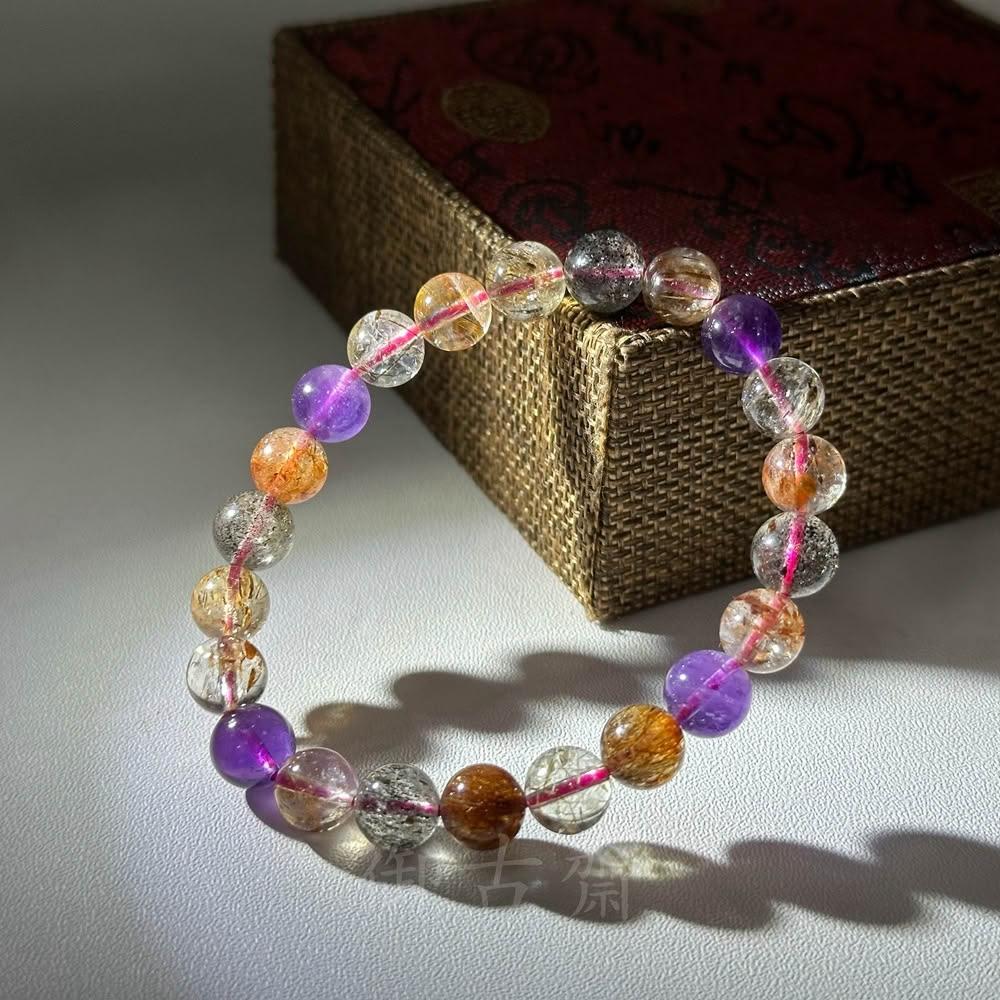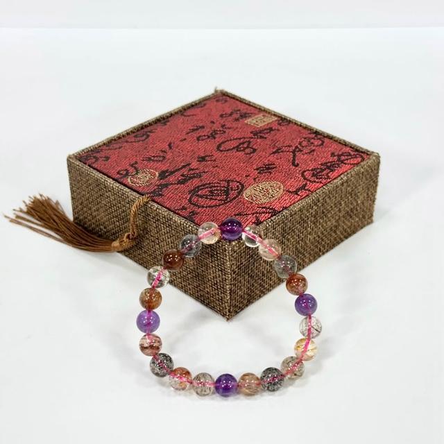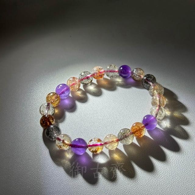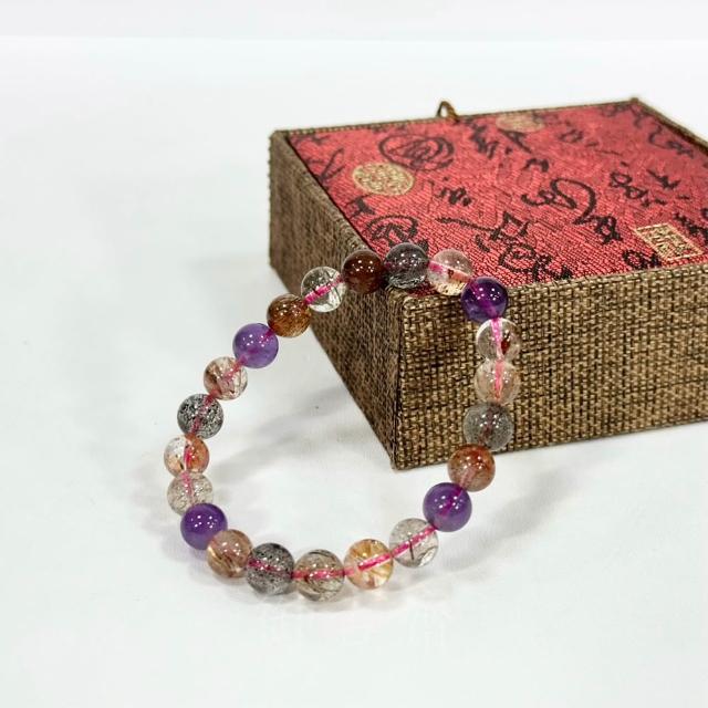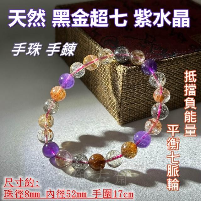 御古齋天然 黑金超七 紫水晶 手珠 手鍊 招財 旺事業 強能量 抵擋負能量 平衡七脈輪 穩定情緒 附盒 0204