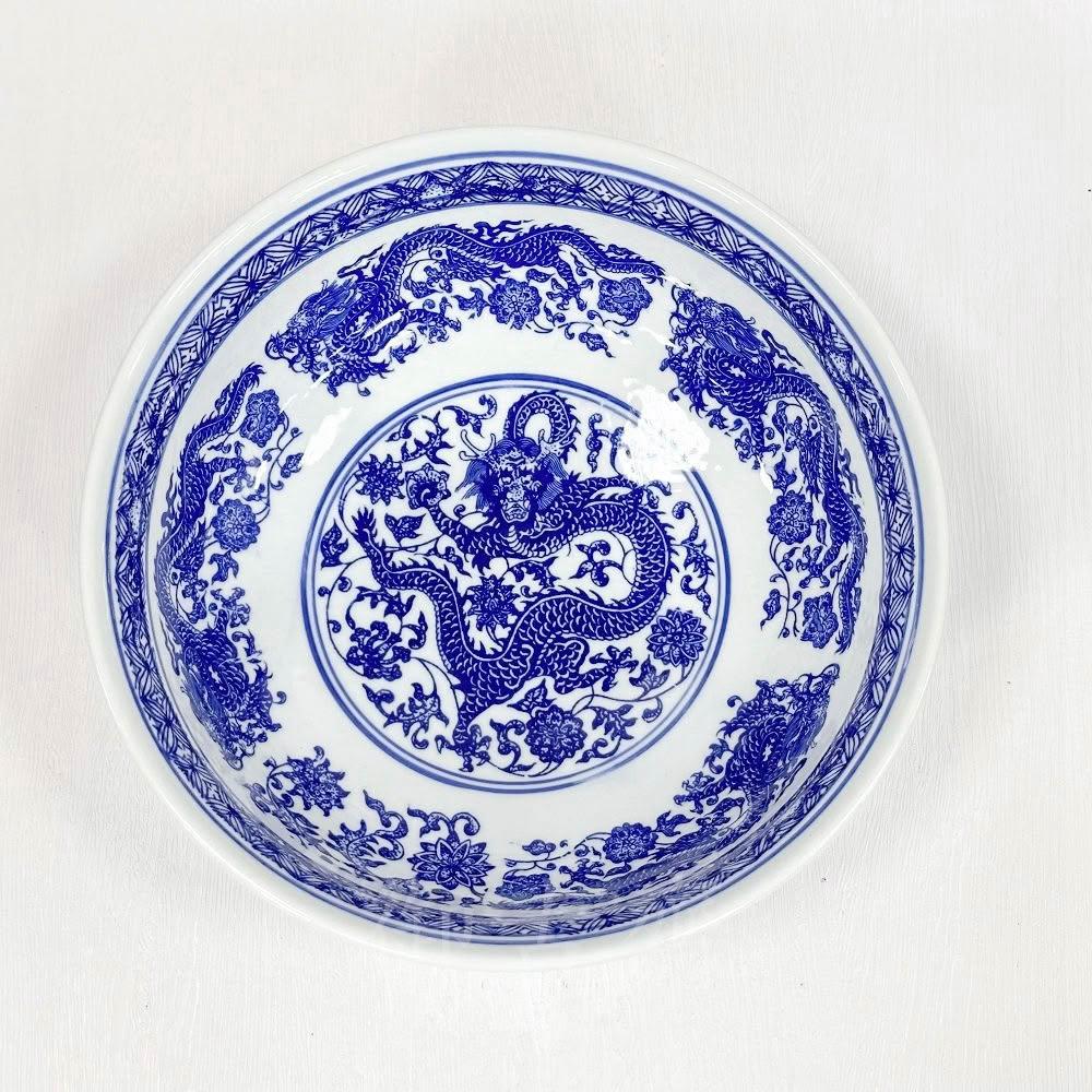 御古齋青花瓷 九龍 大龍盆 大碗公 青花大碗 聚寶盆 聚寶納財 福氣滿滿 陶瓷工藝品 -小款- 0713