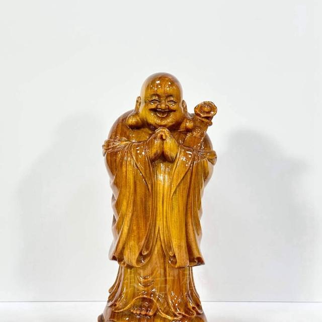御古齋天然 印尼國寶 血龍木 精雕 財神 彌勒佛 手持如意 招財進寶 財源廣進 逢凶化吉 開運擺件 0401