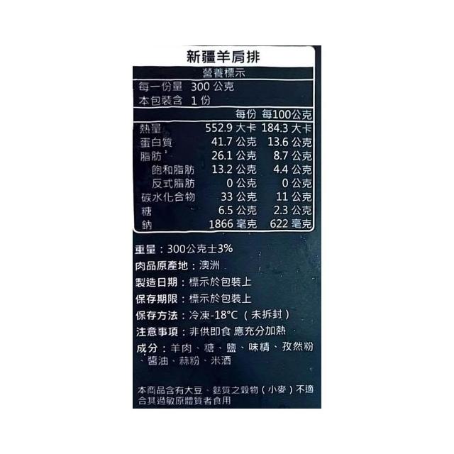 信風 -B70新疆孜然羊肩排/羊肉/烤肉/小家庭/真空裝/料理包調理包/加熱即食/冷凍食品