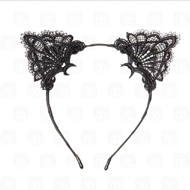 蕾絲貓耳朵髮箍 24H出貨 髮箍 純欲風 派對款貓耳朵髮箍 獸耳 貓咪 貓耳 貓系女友 cos道具 蕾絲 黑色蕾絲