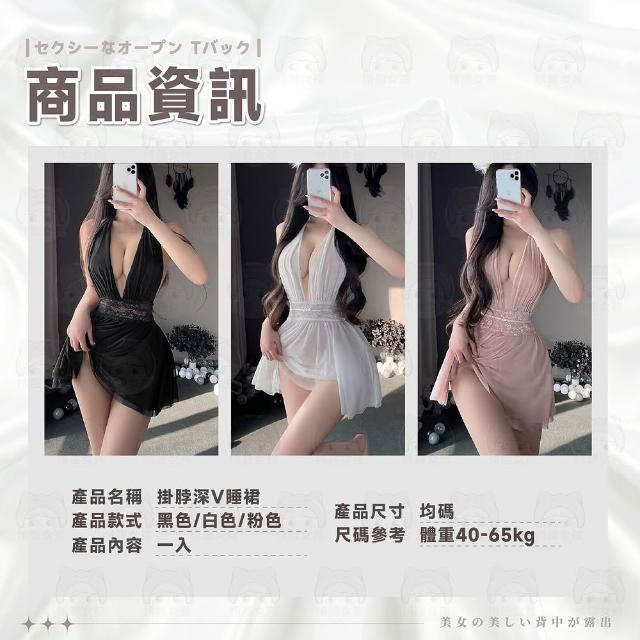 掛脖深V睡裙 24H出貨 薄紗睡裙 垂吊睡裙 V領 法式睡衣 蕾絲收腰 露背裙 深V吊帶 吊帶裙 睡衣 連身裙