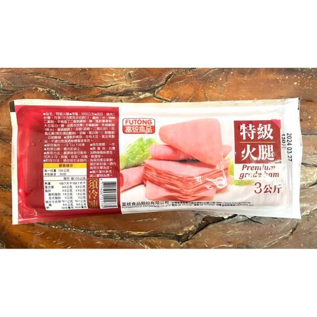 津多冷凍食品王國富統煙燻火腿片/10公分/3kg/氣炸系列