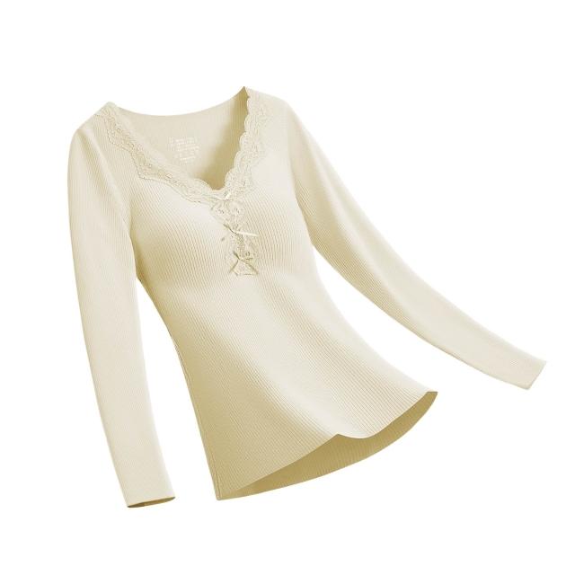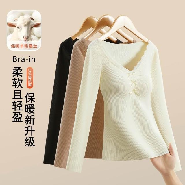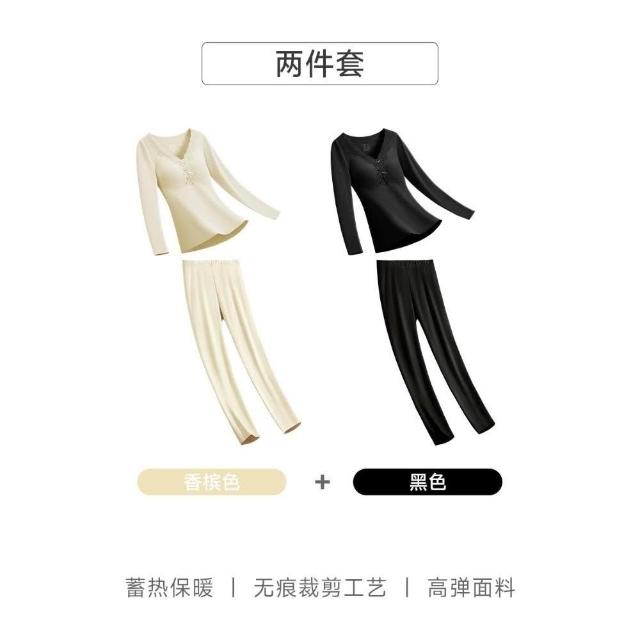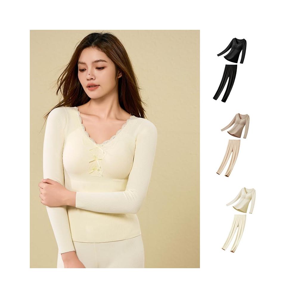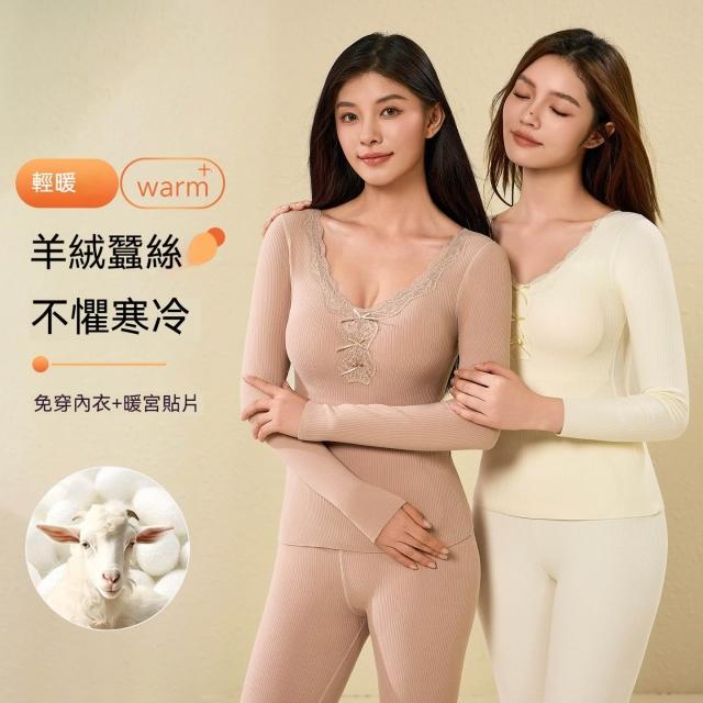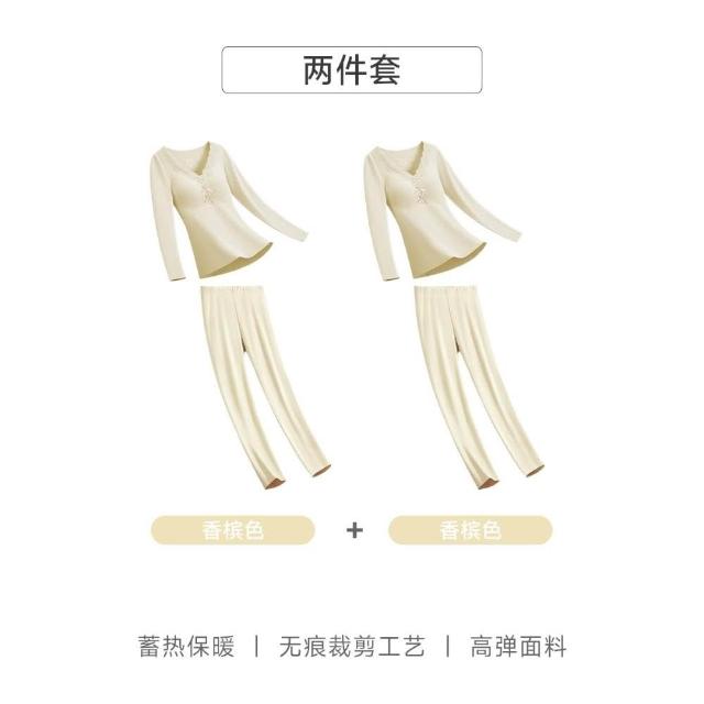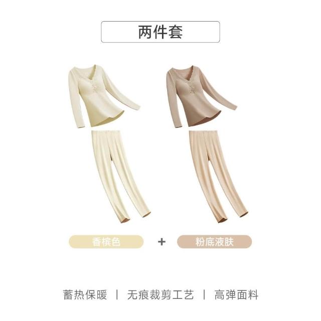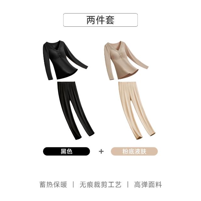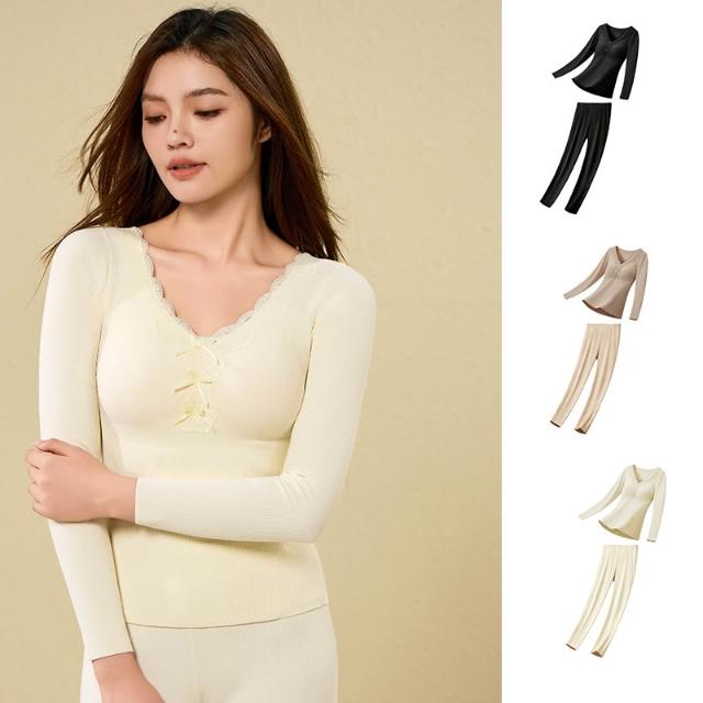 多件組 保暖内衣套裝 蠶絲絨毛貼片 腹部聚熱鎖溫 貼合身形不臃腫 無痕内衣 無鋼圈内衣蕾絲花邊領内衣