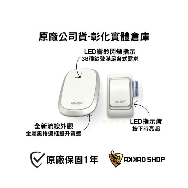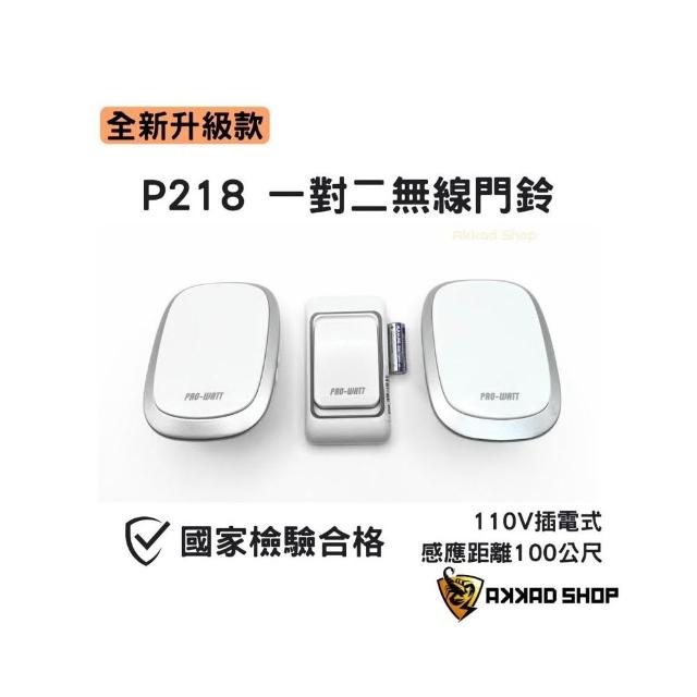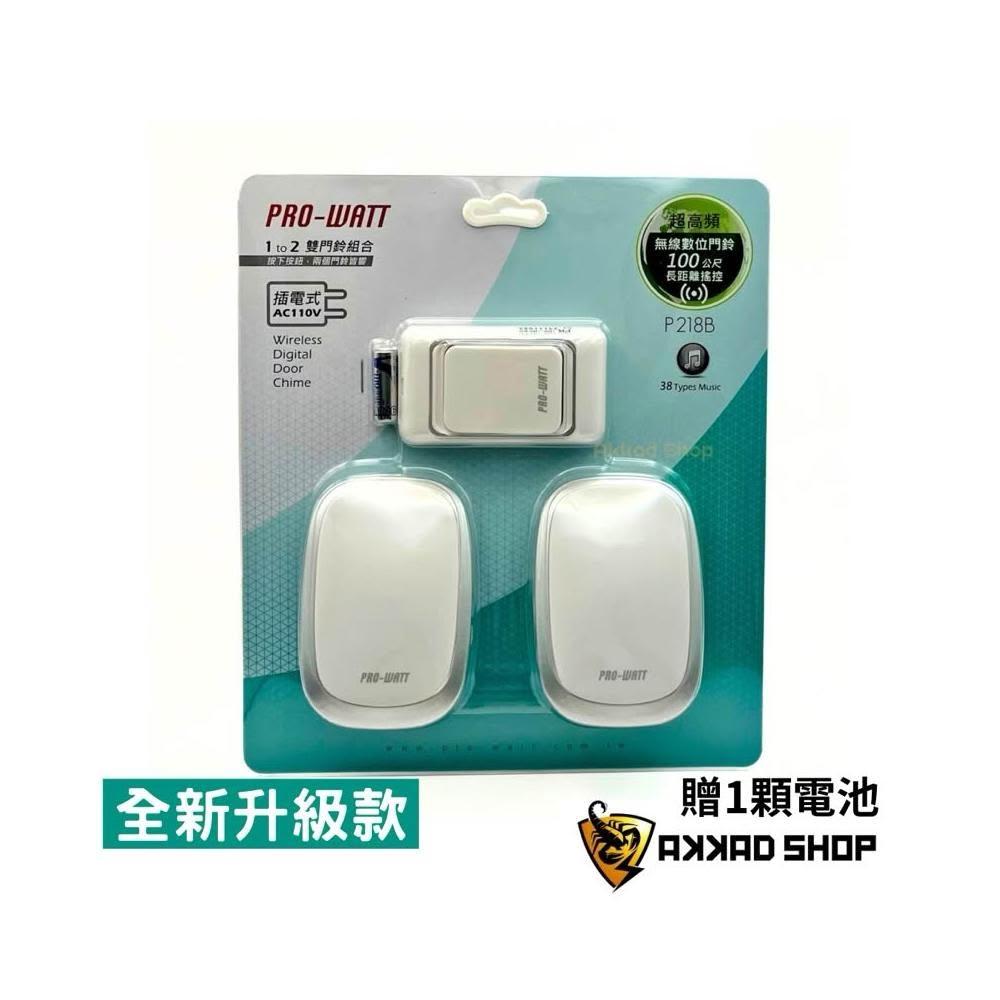 PRO-WATTP218B 一對二 插電式 無線數位 門鈴 1按鍵 2插電式門鈴