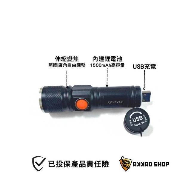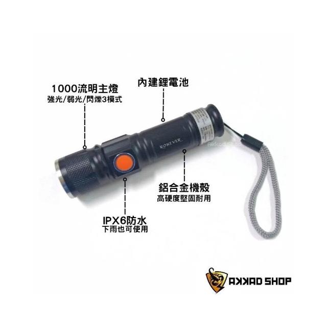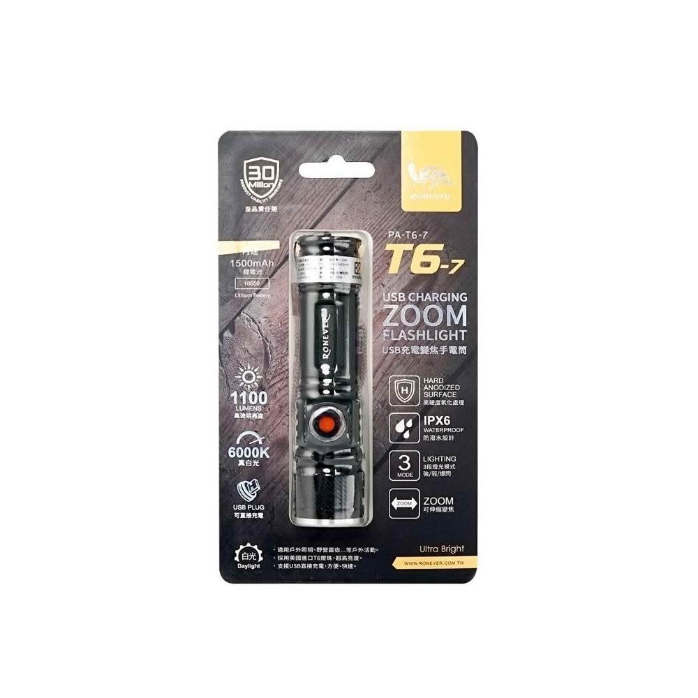 RONEVERPA-T6-7 充電式 變焦手電筒 防潑水手電筒 充電手電筒 內建鋰電池