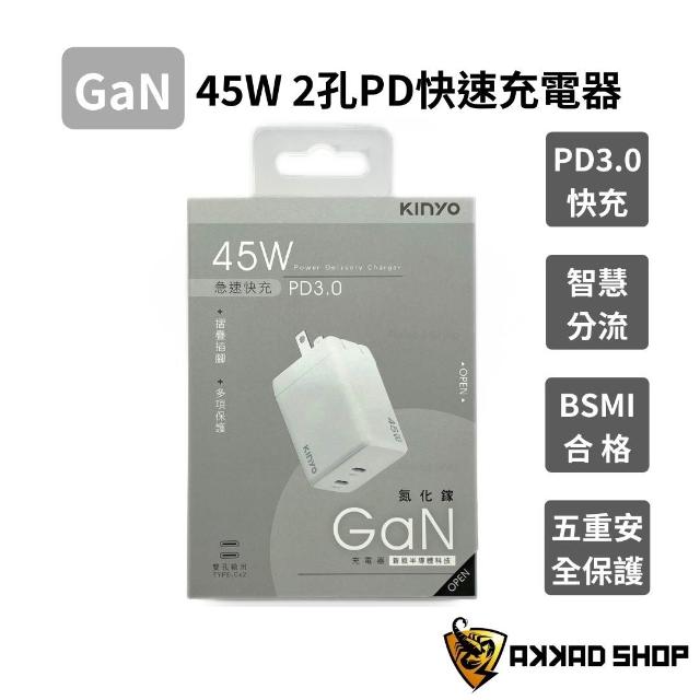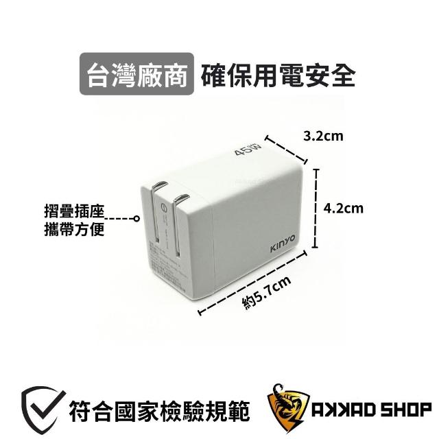 KINYOGaN 氮化鎵充電器 PD 45W 快充 雙孔 TYPE-C 摺疊插座 輕巧好攜帶 支援Macbook