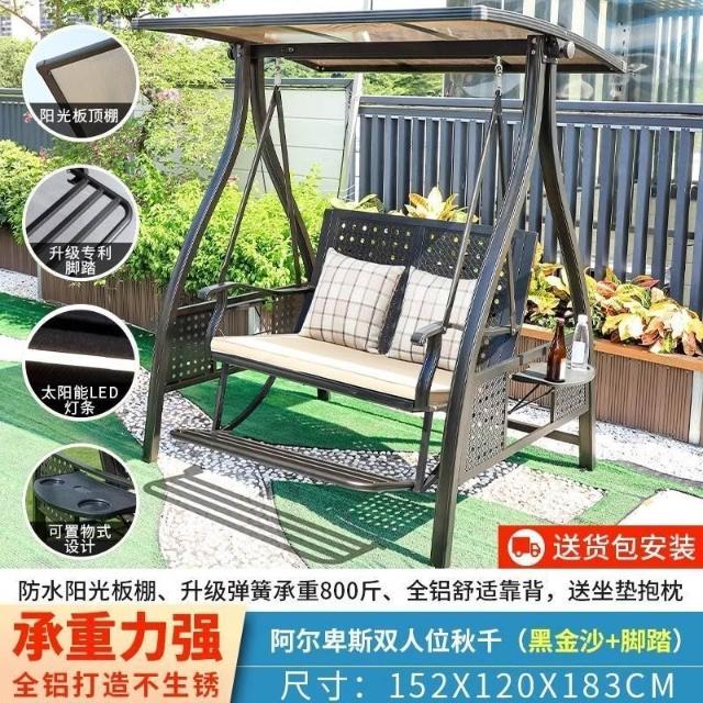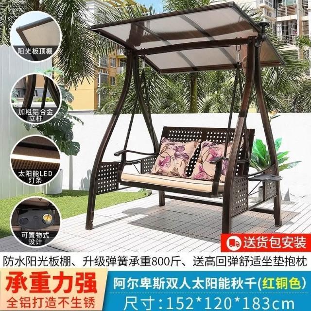 北燦秋千戶外庭院花園陽臺室外防雨太陽能鑄鋁吊椅雙人搖椅秋千