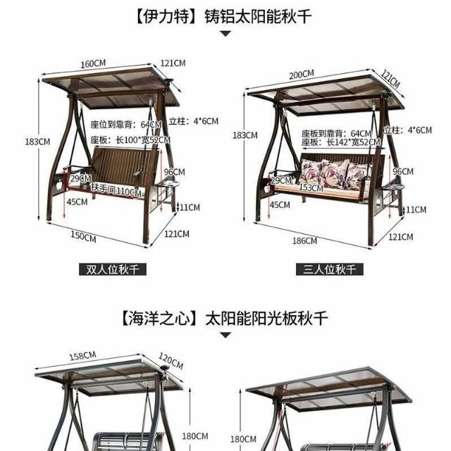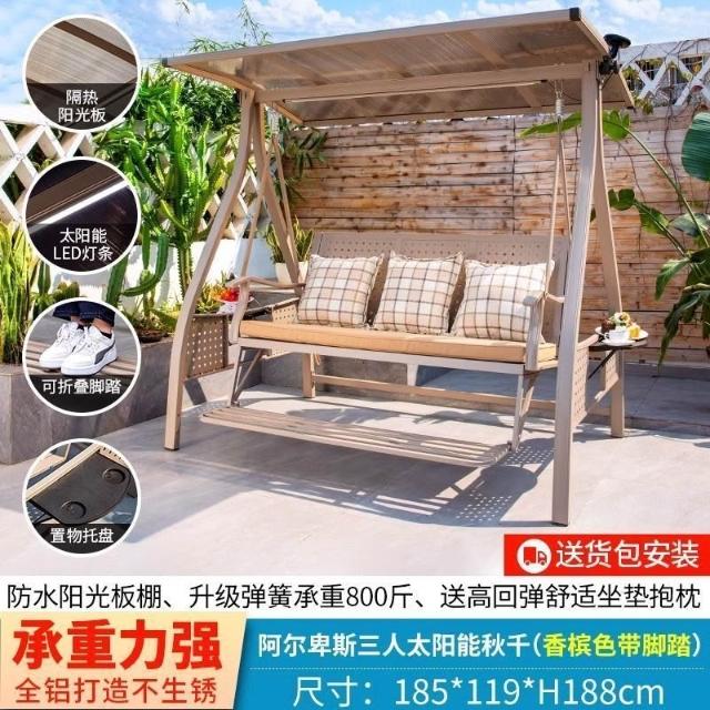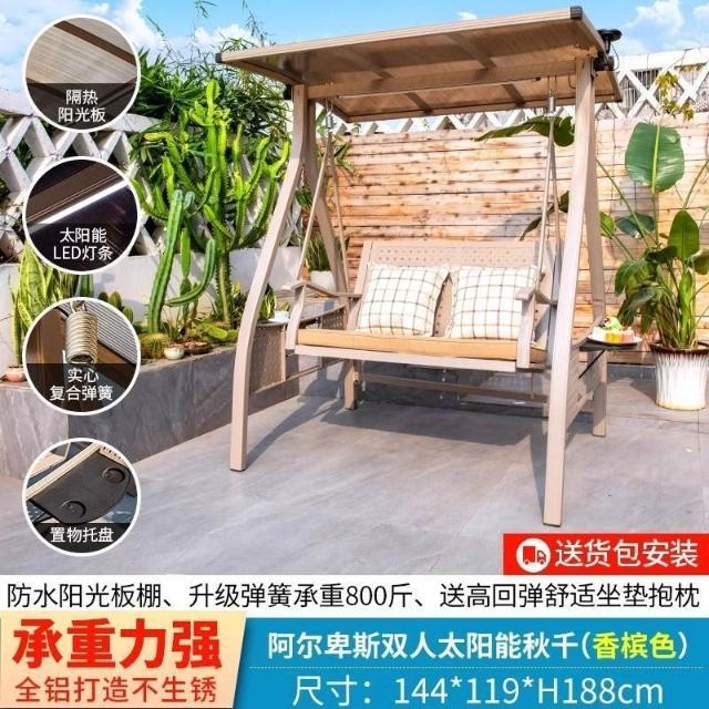 北燦秋千戶外庭院花園陽臺室外防雨太陽能鑄鋁吊椅雙人搖椅秋千