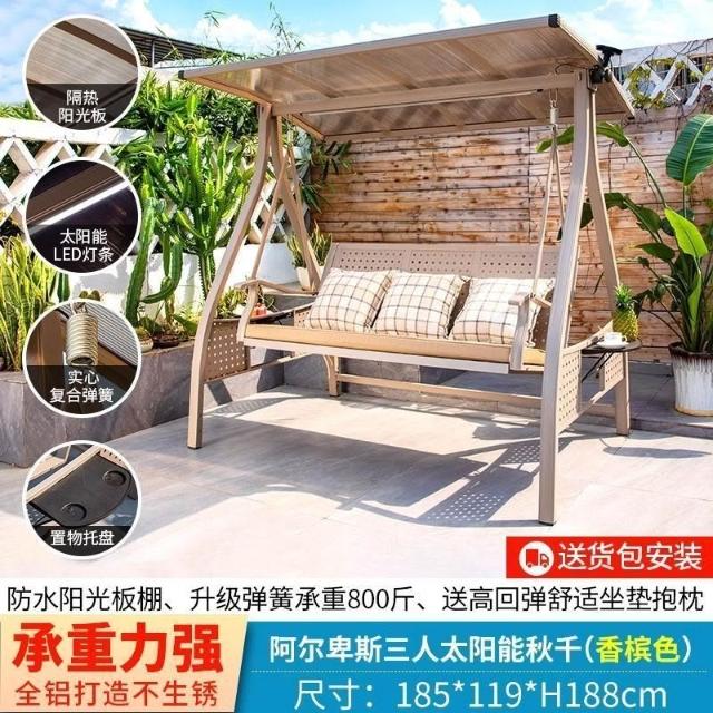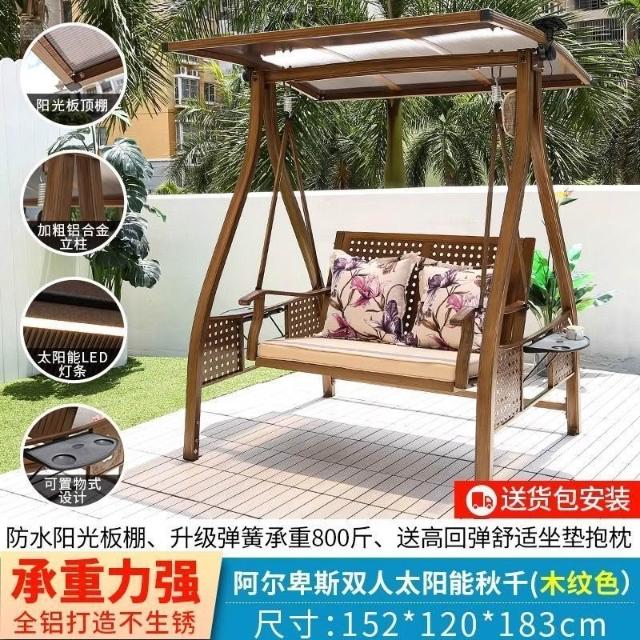 北燦秋千戶外庭院花園陽臺室外防雨太陽能鑄鋁吊椅雙人搖椅秋千