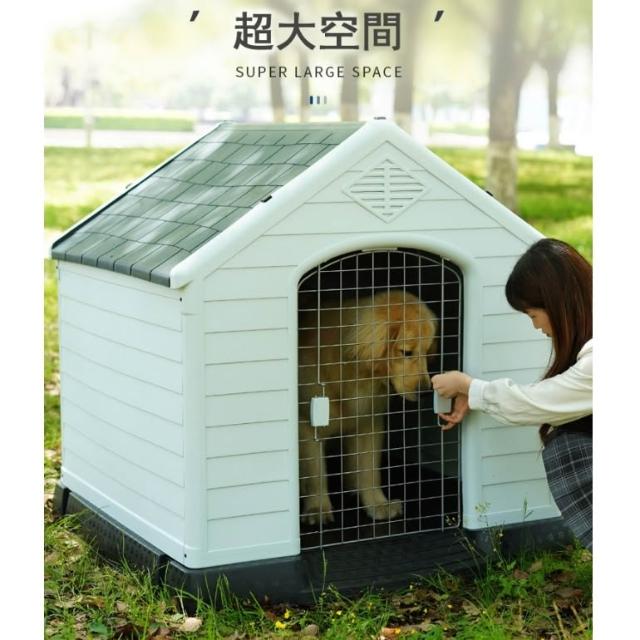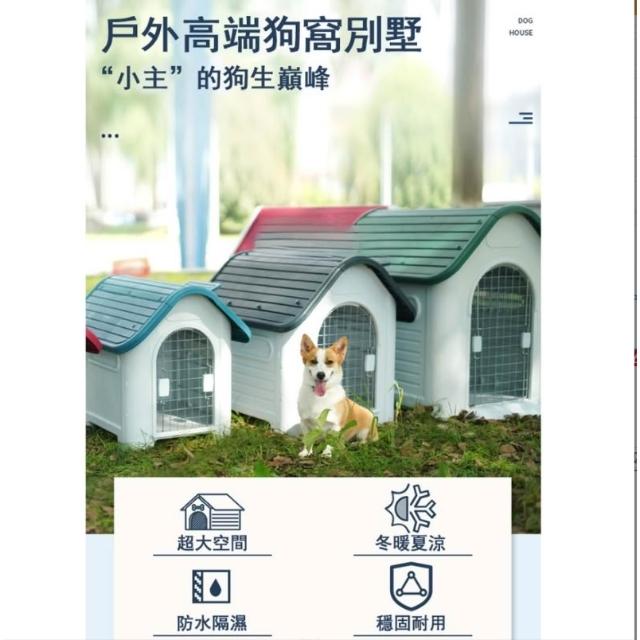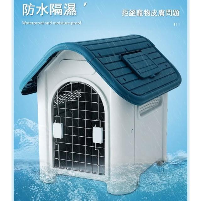 戶外狗屋防水 四季通用狗房 塑膠狗屋 冬天保暖寵物屋 防雨防晒狗窩房子型 不鏽鋼門+開天窗超通風