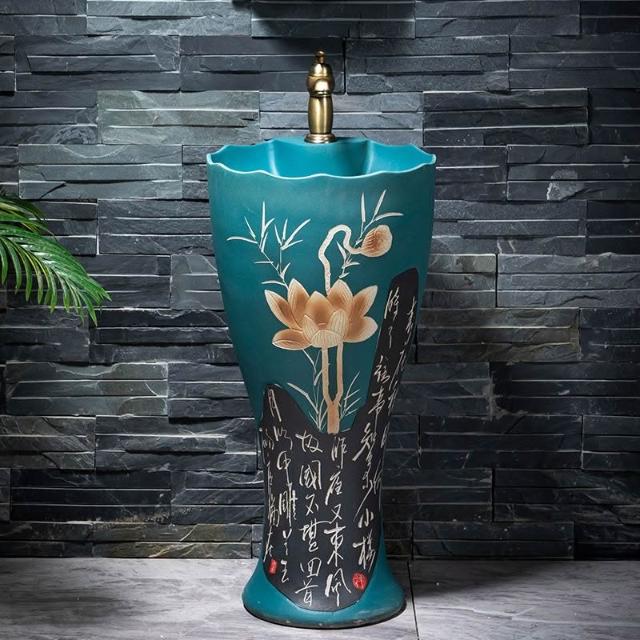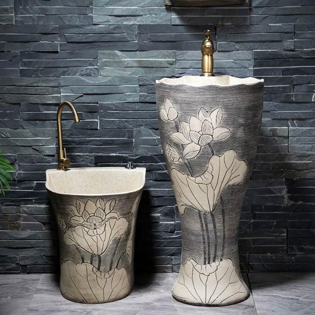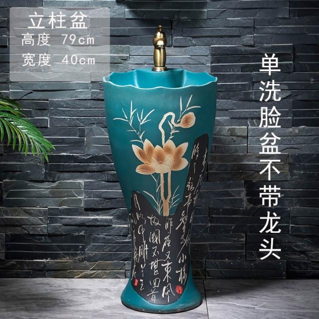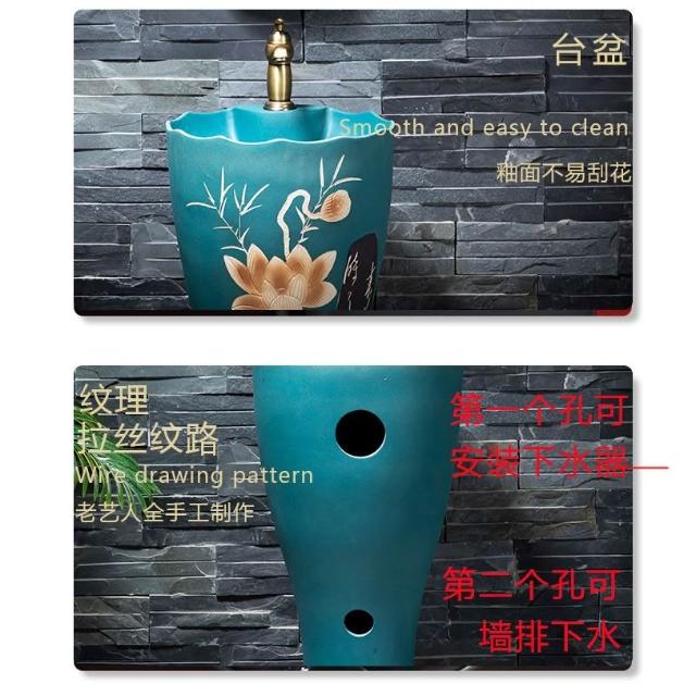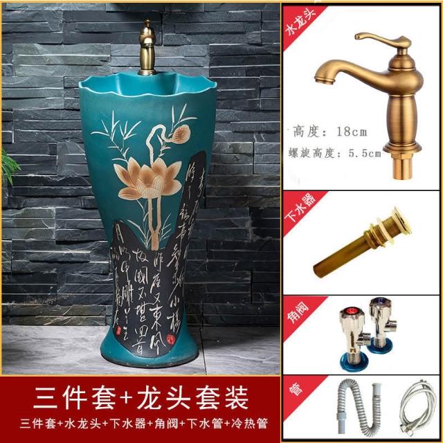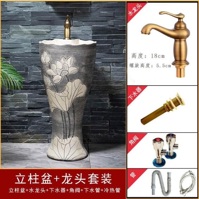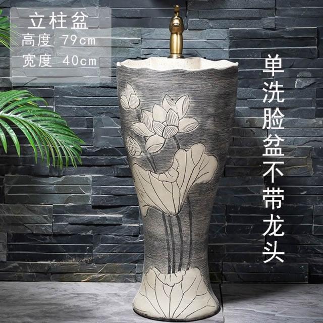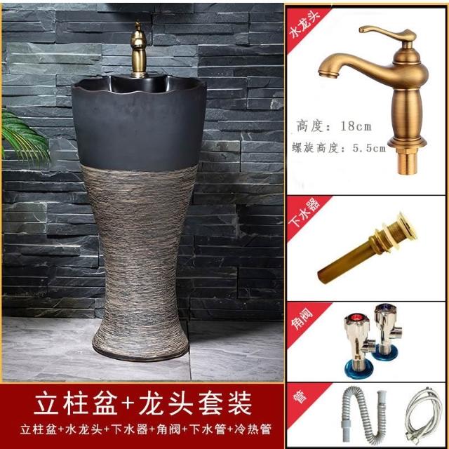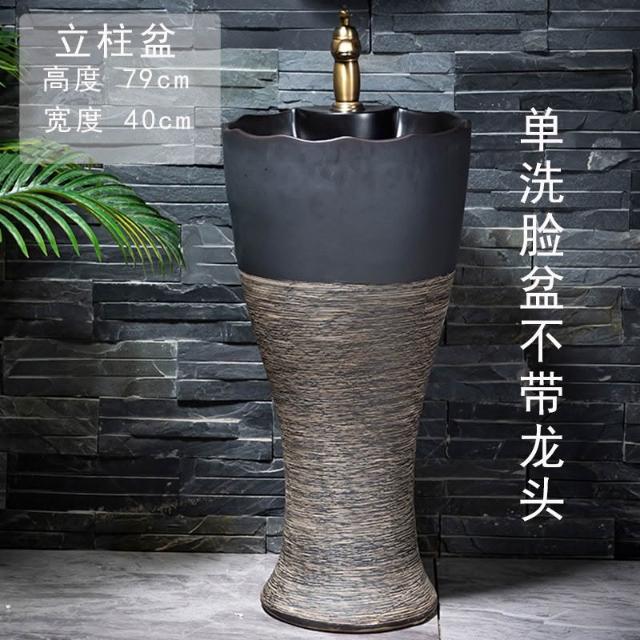 立柱盆陶瓷庭院戶外家用一體落地式洗手盆復古酒店洗漱水池洗臉盆