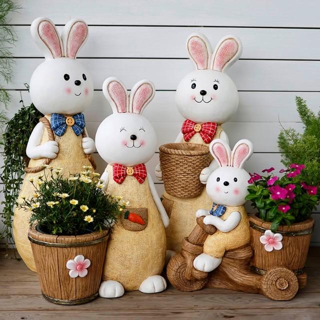 可愛兔子花盆花園多肉網紅陽臺庭院裝飾布置創意戶外動物大號擺件