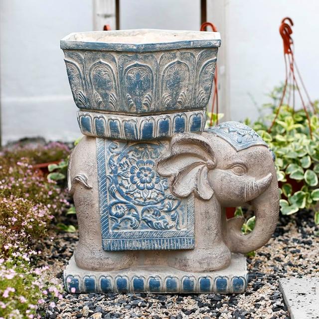 大象石墩花盆底座中式庭院入戶門花園仿石雕一對陽臺佈置裝飾擺件