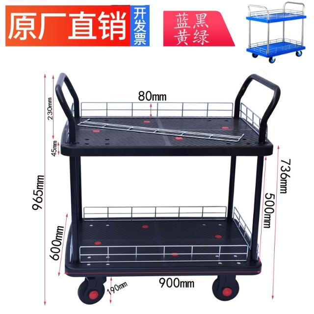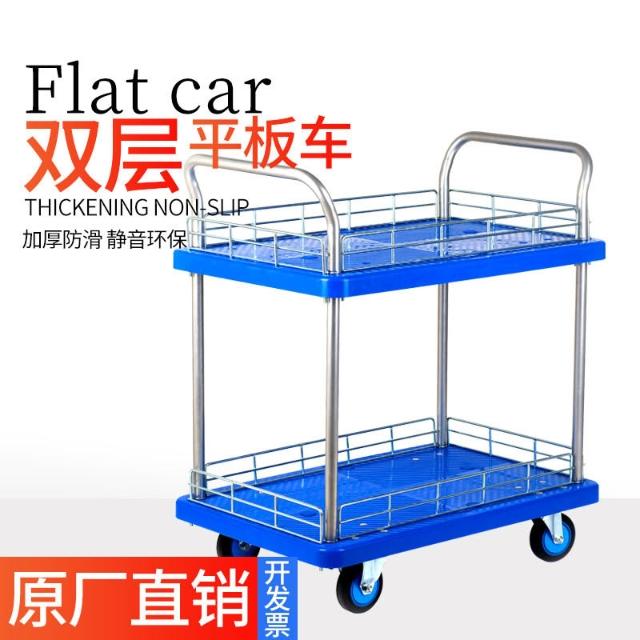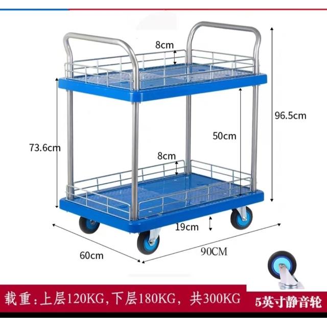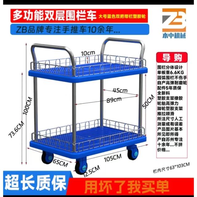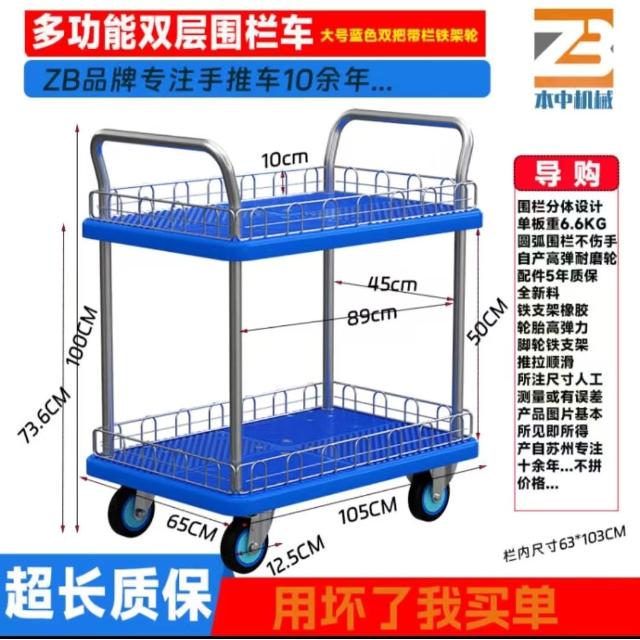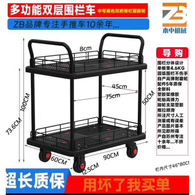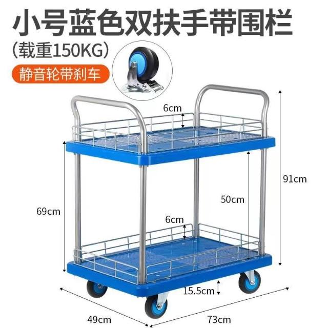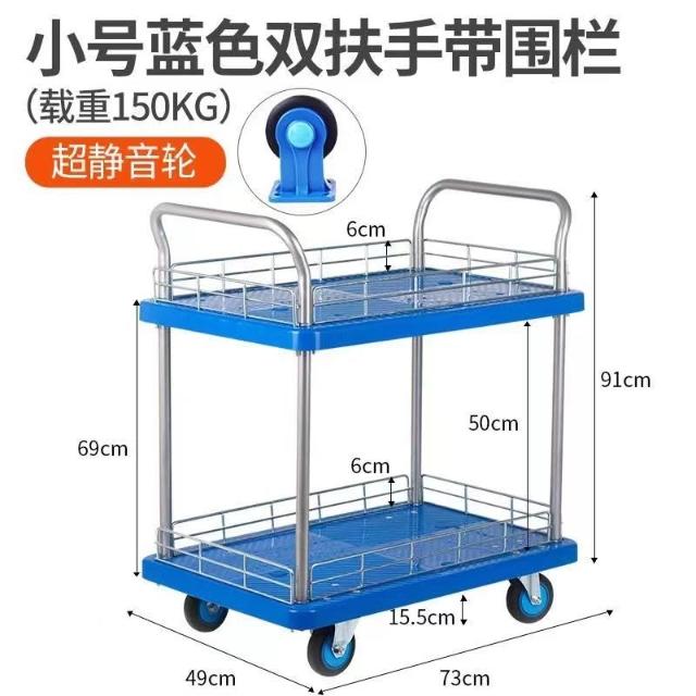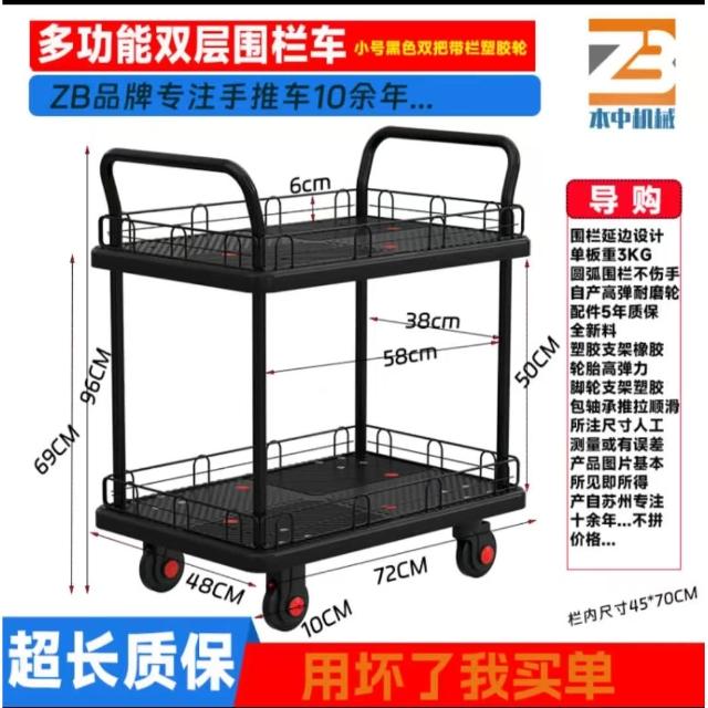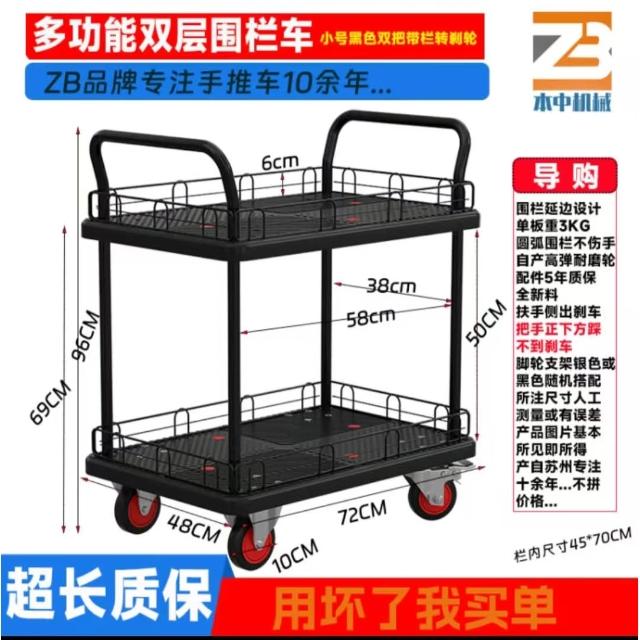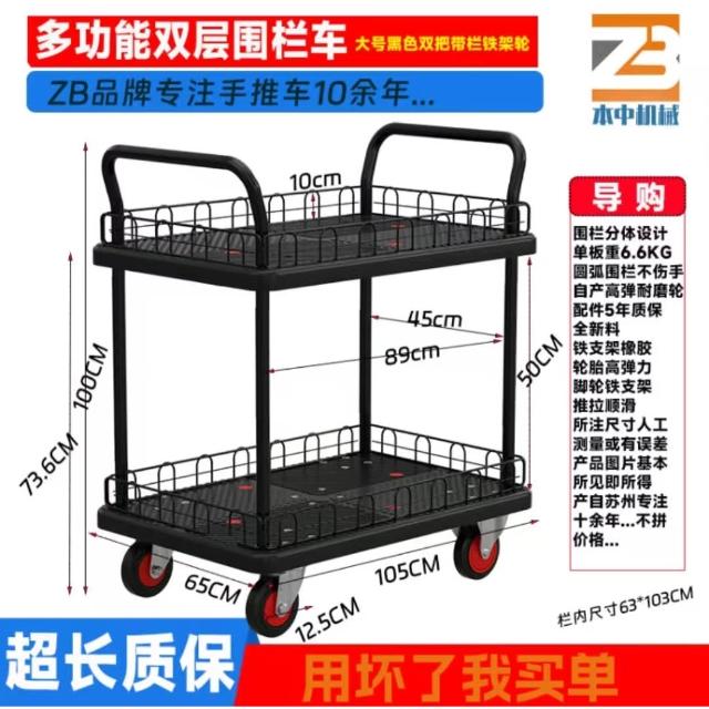 雙層平板車帶圍欄手推車小推車多層平板車拉貨倉庫分揀車