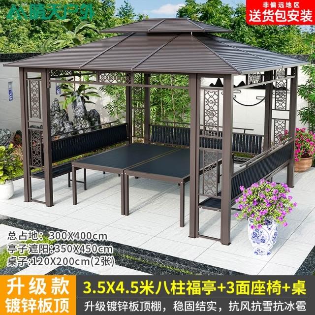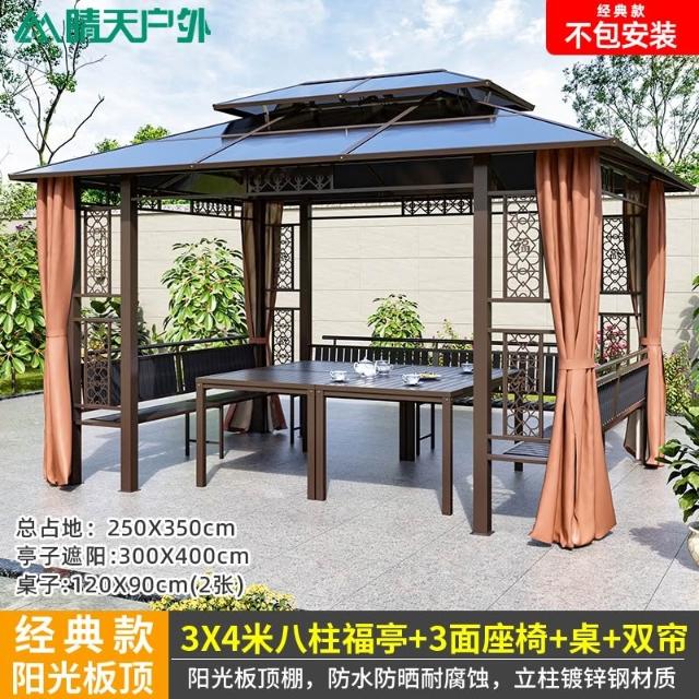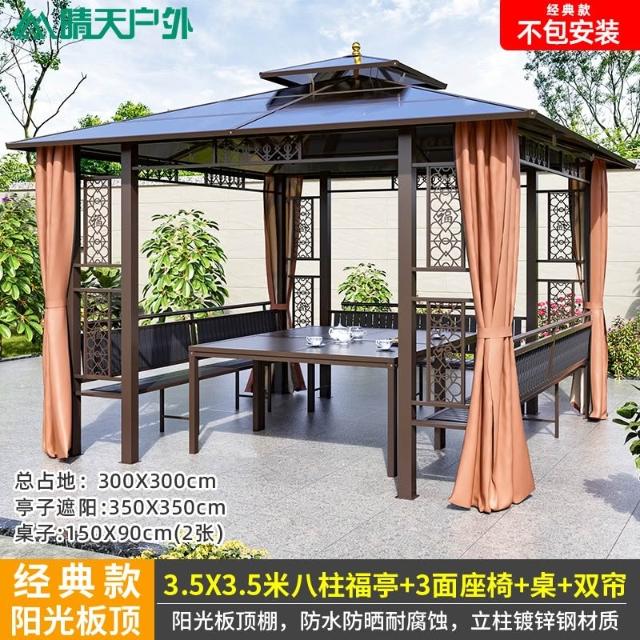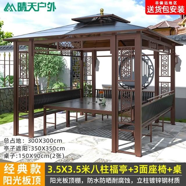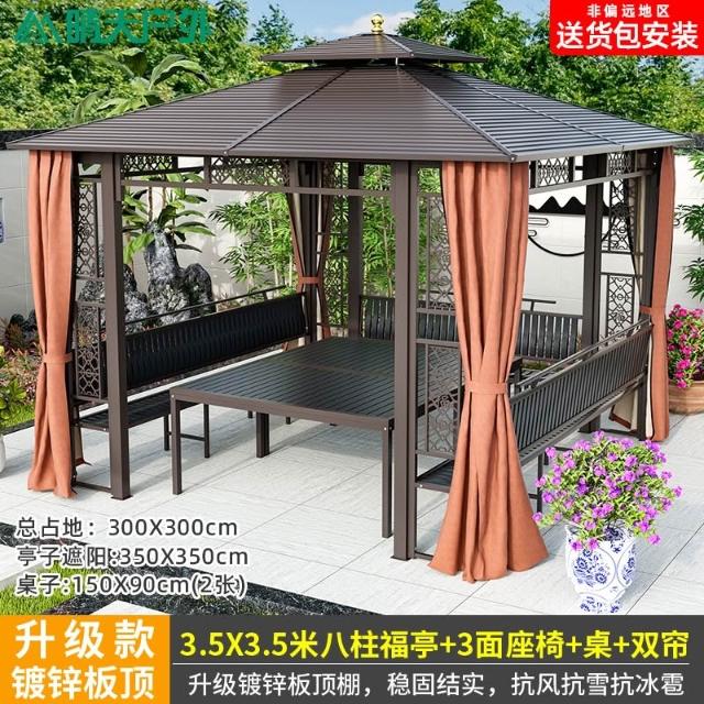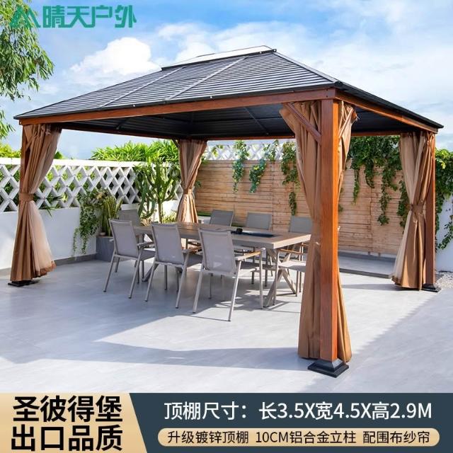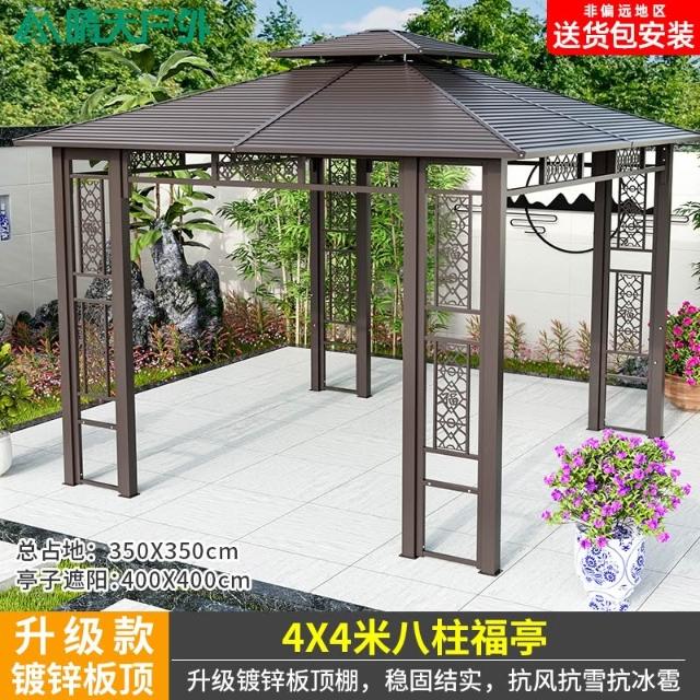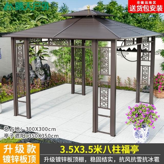 戶外涼亭庭院別墅花園室外休閒鐵藝遮陽棚露天露臺樓頂鋁合金亭子