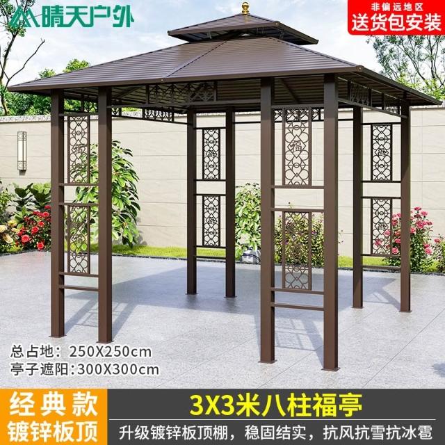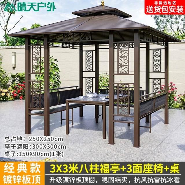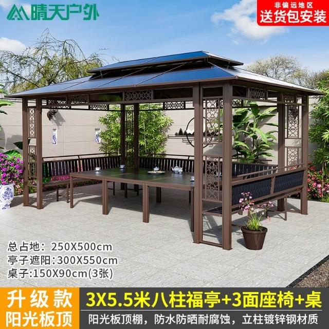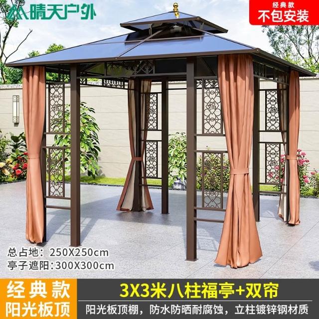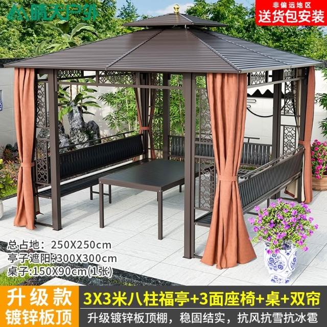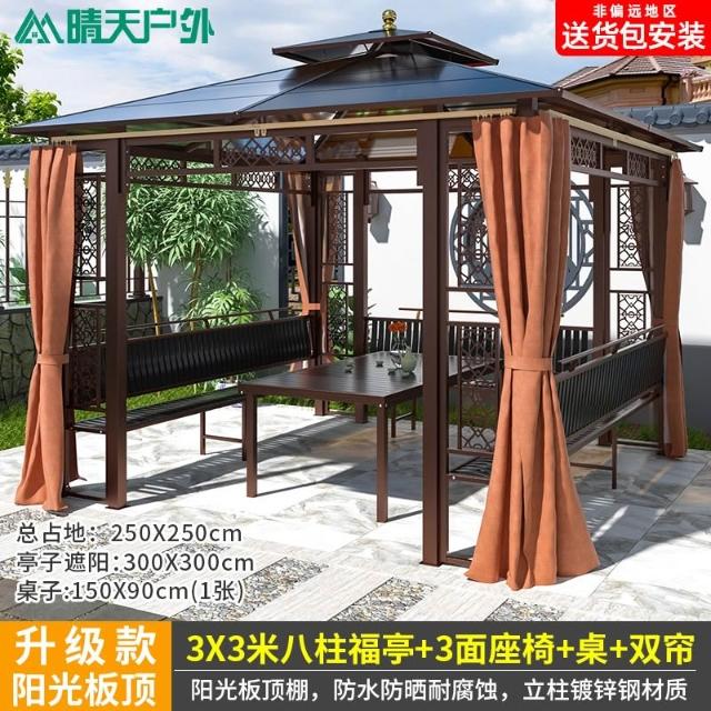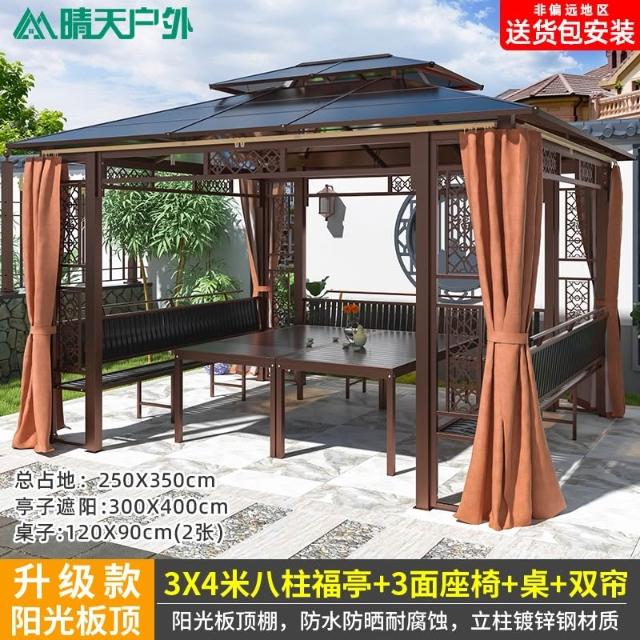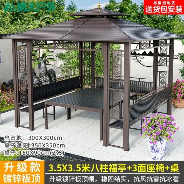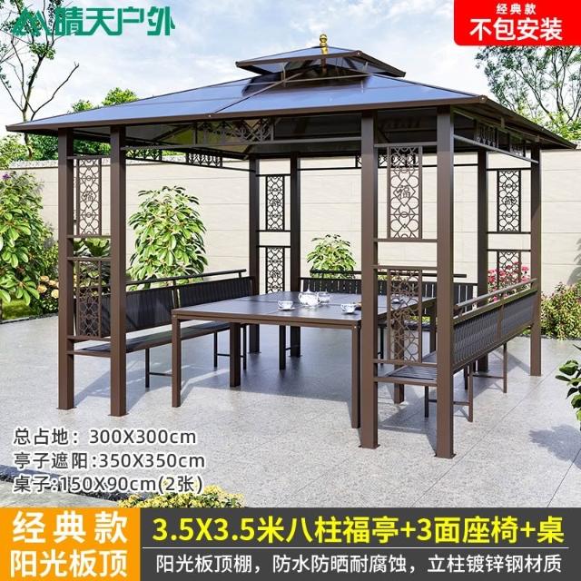 戶外涼亭庭院別墅花園室外休閒鐵藝遮陽棚露天露臺樓頂鋁合金亭子