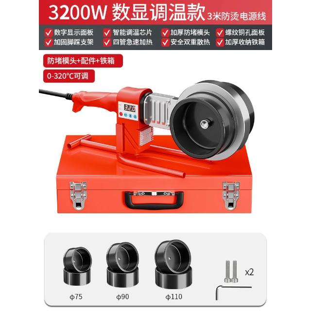 德力西大功率熱熔機ppr水管對接熱熔器pe110熔接器75水電焊機新款