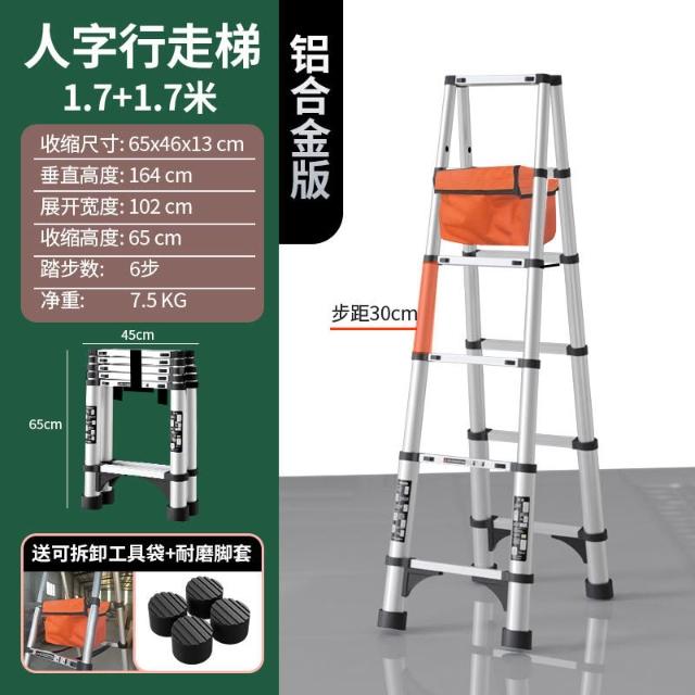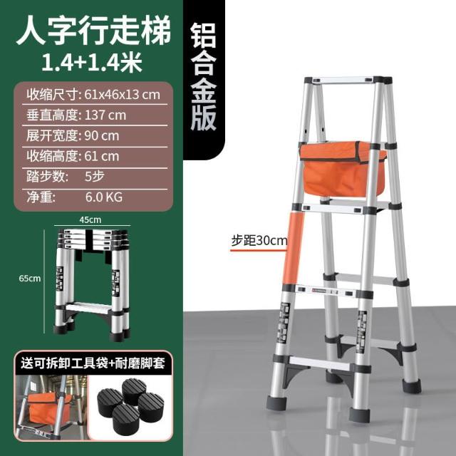 可行走人字梯伸縮梯折疊梯子家用鋁合金木工升降便攜多功能工程梯