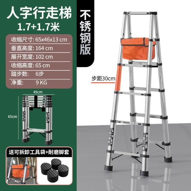 可行走人字梯伸縮梯折疊梯子家用鋁合金木工升降便攜多功能工程梯