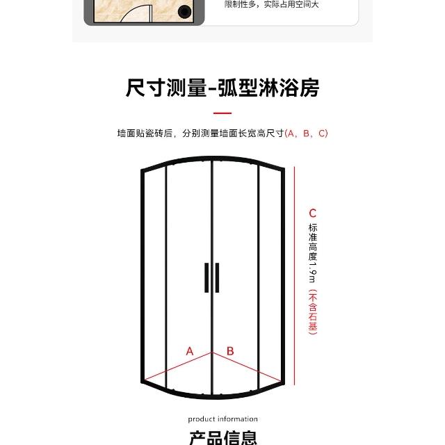 淋浴房玻璃隔斷衛生間家用洗澡房浴屏沐浴房弧形簡易浴室玻璃門
