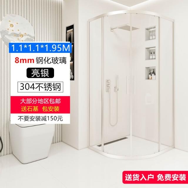 淋浴房玻璃隔斷衛生間家用洗澡房浴屏沐浴房弧形簡易浴室玻璃門