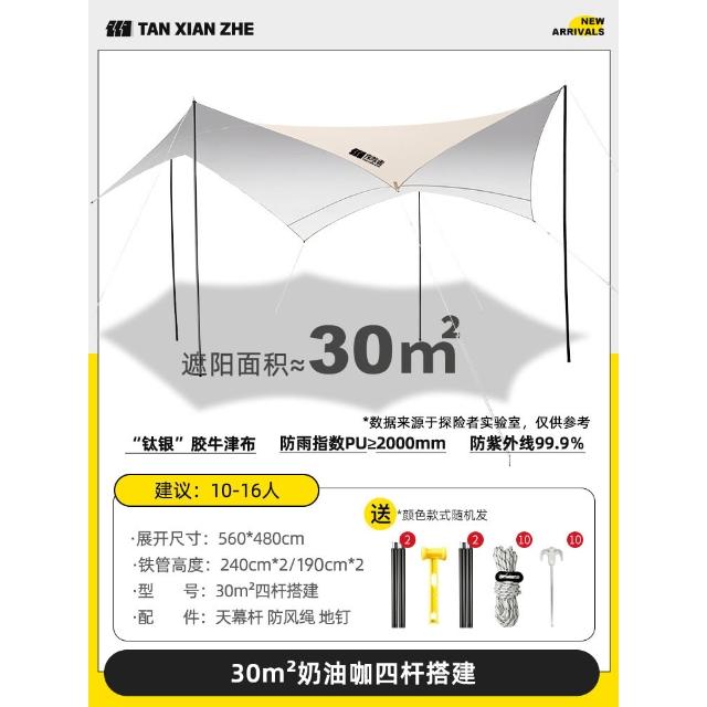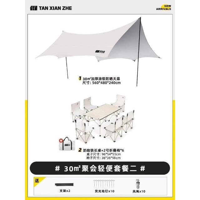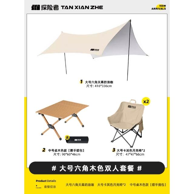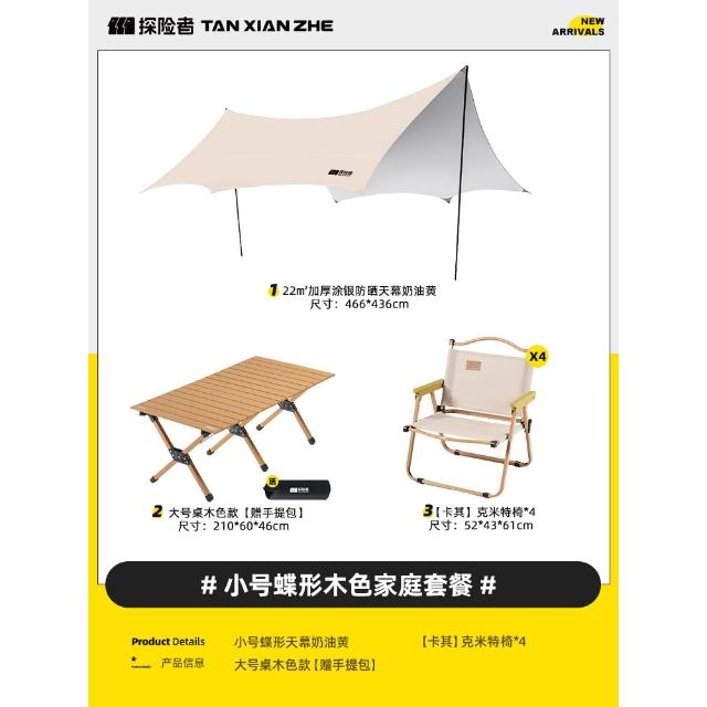 探險者塗銀天幕帳篷戶外2025新款野餐野營桌椅裝備露營防曬遮陽棚