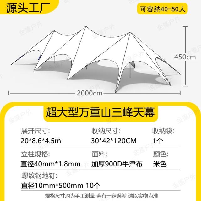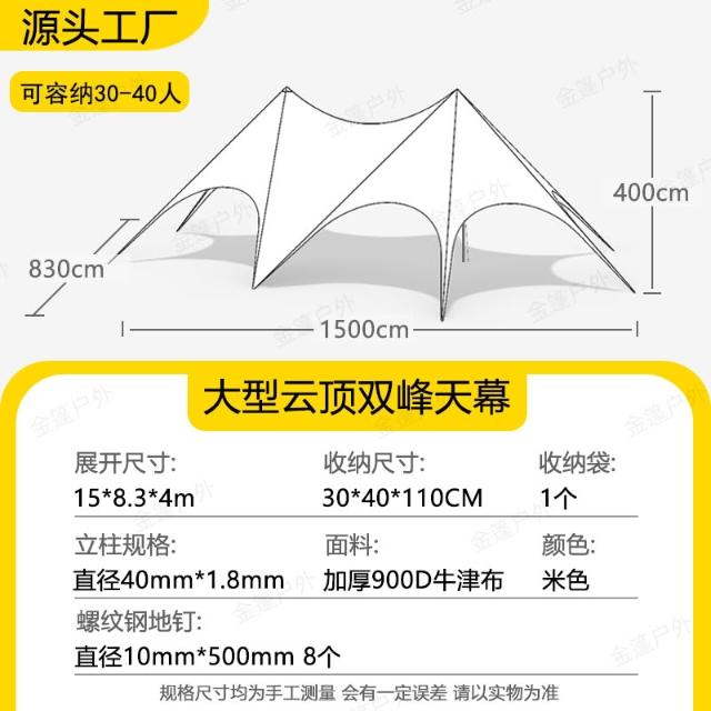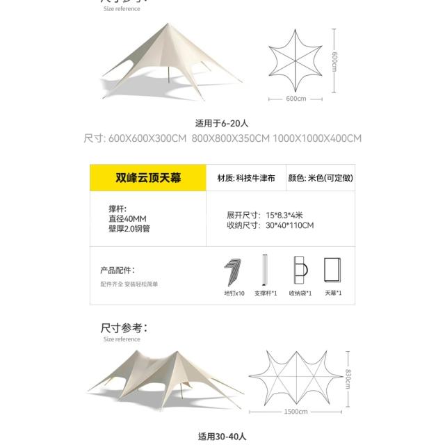戶外營地用單峰雙峰三峰天幕超大型防雨遮陽棚雲頂萬重山露營帳篷