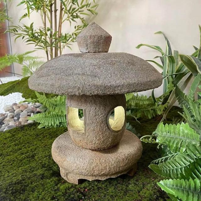 日式庭院石燈青石仿古戶外石燈籠園林景觀裝飾太陽能燈新中式宮燈