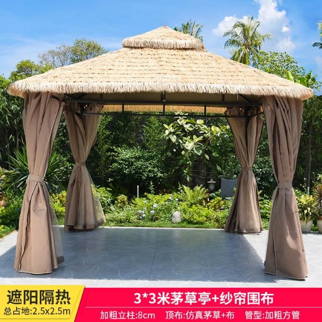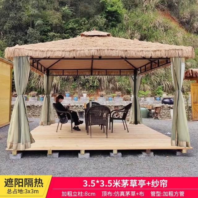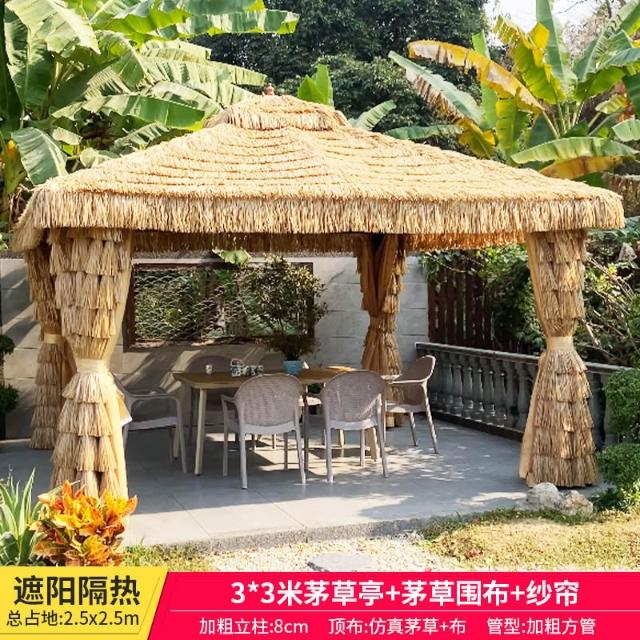 戶外庭院涼亭茅草遮陽棚室外休閒稻草帳篷別墅花園露臺外擺亭子