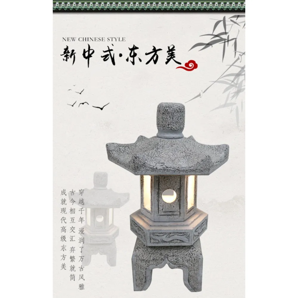 青石雕日式石燈籠庭院仿古中式園林戶外太陽能電擺件禪意石塔造景