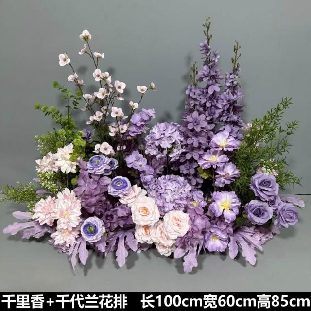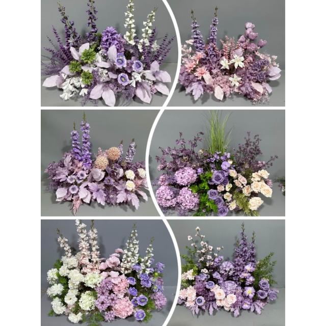 婚慶道具紫色系地排花仿真絹花訂婚佈置花藝裝飾花婚禮堂成品花排