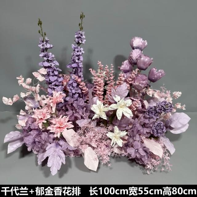 婚慶道具紫色系地排花仿真絹花訂婚佈置花藝裝飾花婚禮堂成品花排