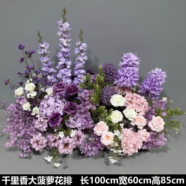 婚慶道具紫色系地排花仿真絹花訂婚佈置花藝裝飾花婚禮堂成品花排