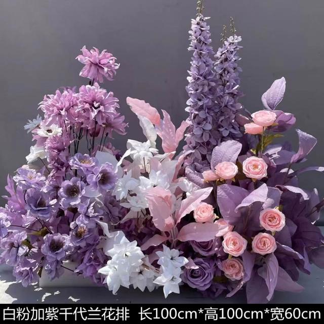 婚慶道具紫色系地排花仿真絹花訂婚佈置花藝裝飾花婚禮堂成品花排