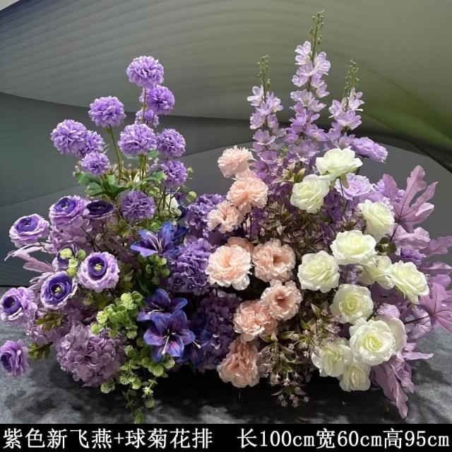 婚慶道具紫色系地排花仿真絹花訂婚佈置花藝裝飾花婚禮堂成品花排