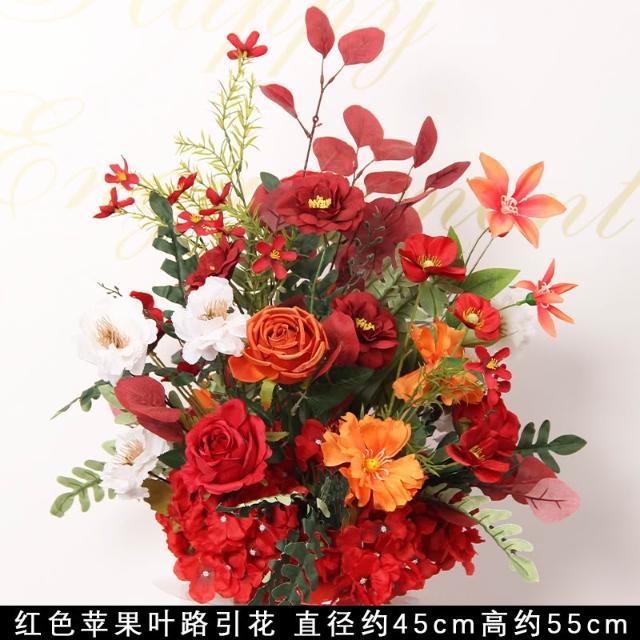 婚慶仿真花訂婚假花婚禮佈置紅色地排花 舞臺KT板裝飾掛花路引花
