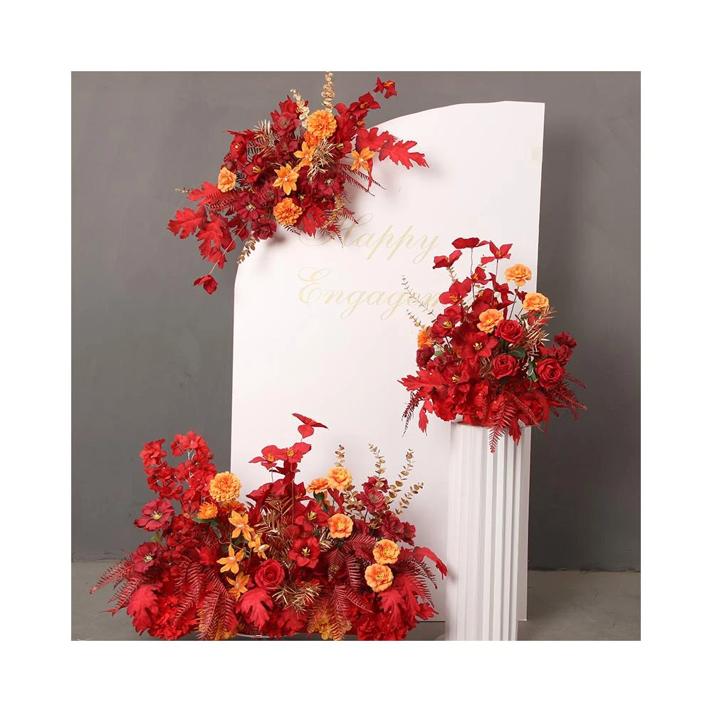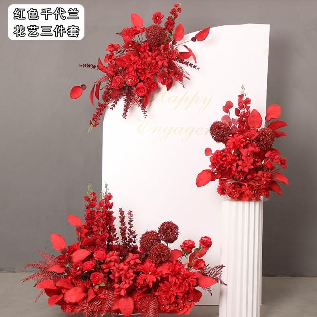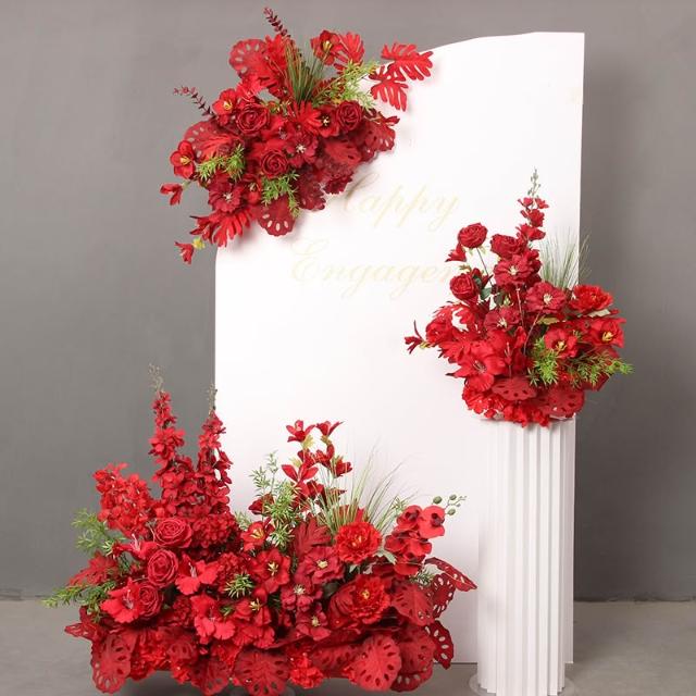 婚慶仿真花訂婚假花婚禮佈置紅色地排花 舞臺KT板裝飾掛花路引花