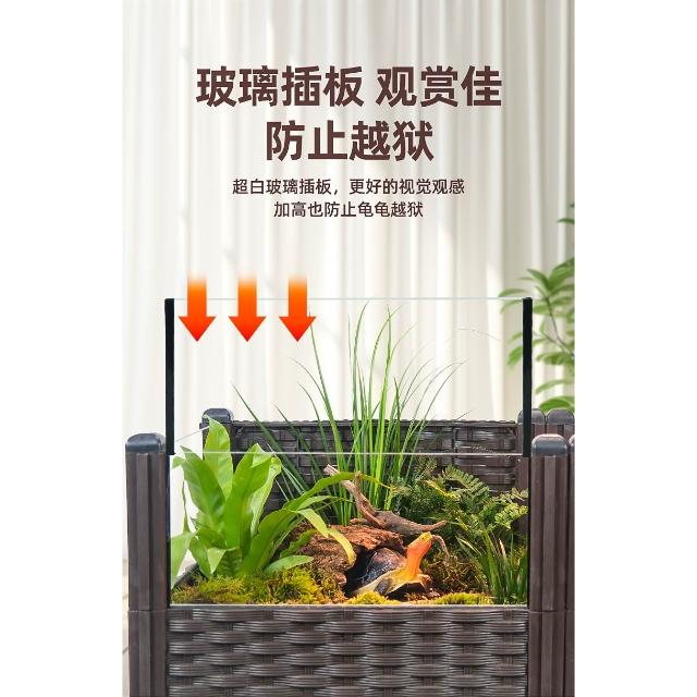 生態烏龜缸大型造景家用養龜黃緣專用玻璃飼養箱帶曬臺種植箱別墅