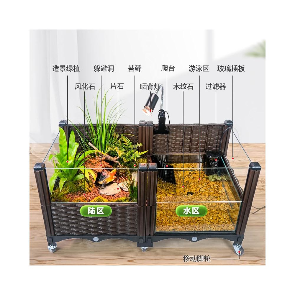 生態烏龜缸大型造景家用養龜黃緣專用玻璃飼養箱帶曬臺種植箱別墅