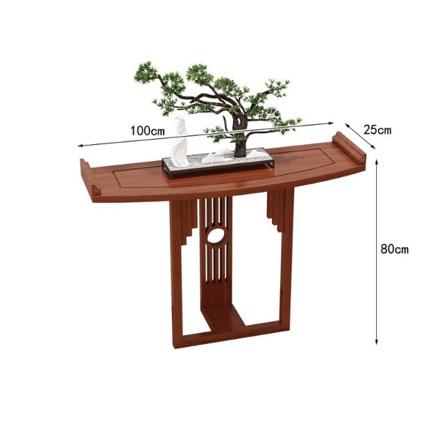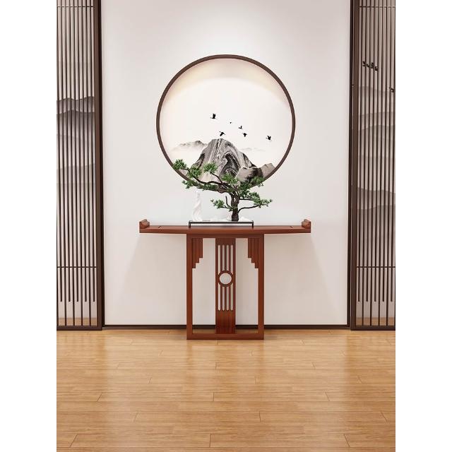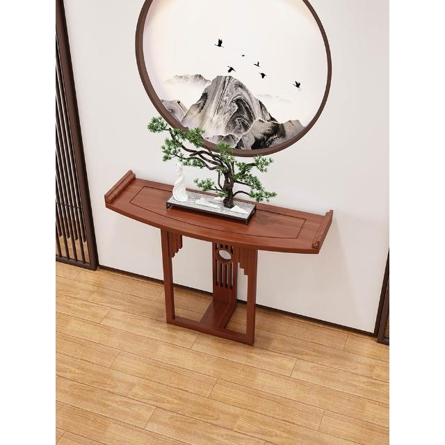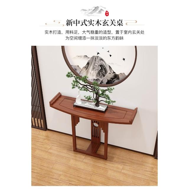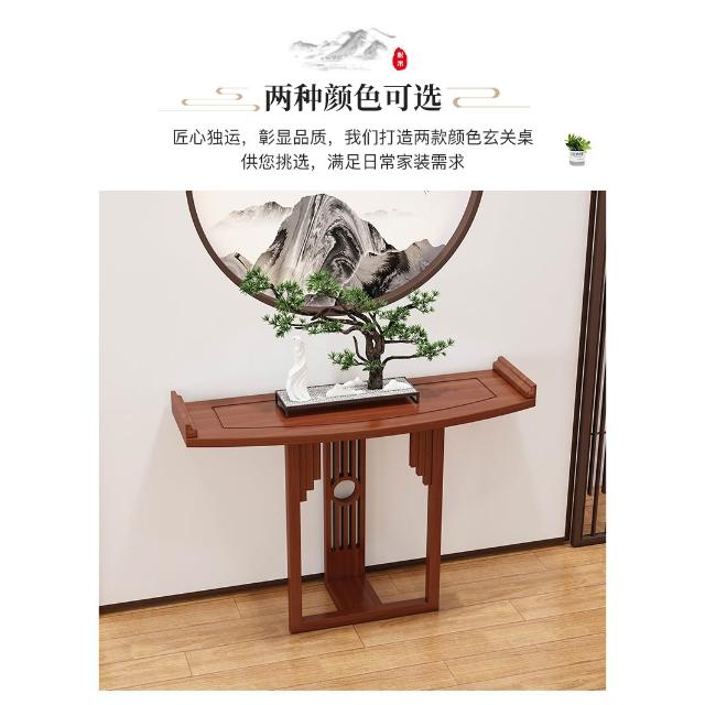 新中式半圓玄關桌實木條案靠牆弧形玄關櫃現代玄關臺窄桌走廊案臺