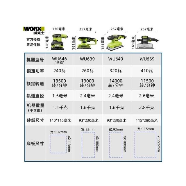 威克士砂紙機砂光機WU646 木工牆壁牆面膩子磨牆機打磨機電動工具