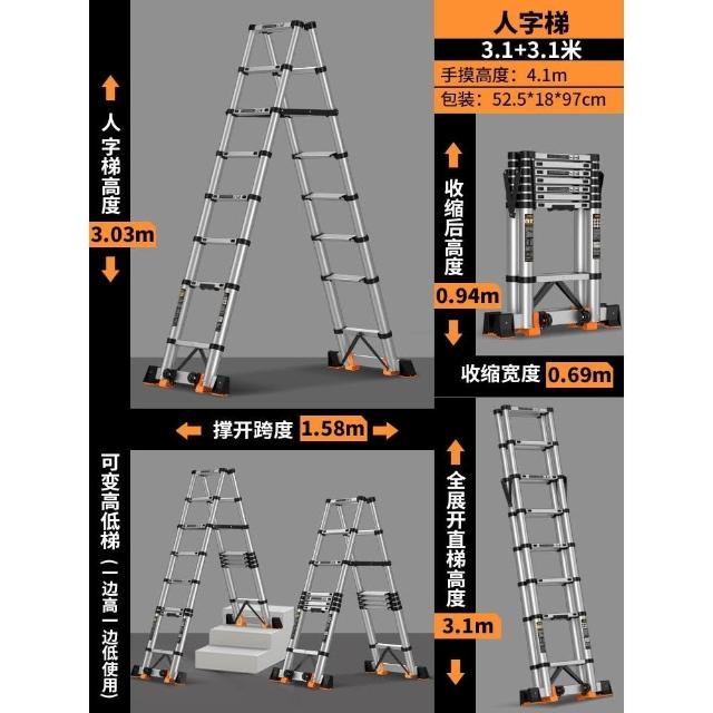 正優鋁合金人字梯子家用伸縮折疊多功能加厚便攜工程升降樓梯子