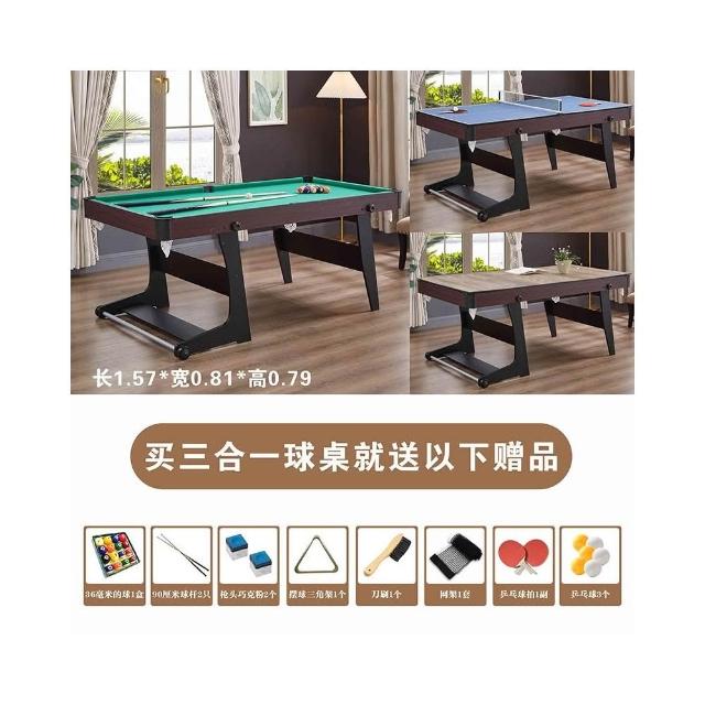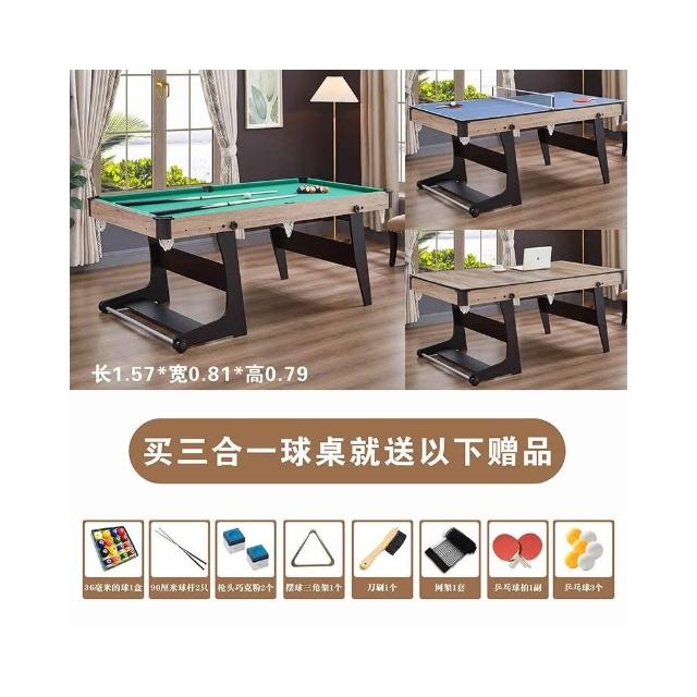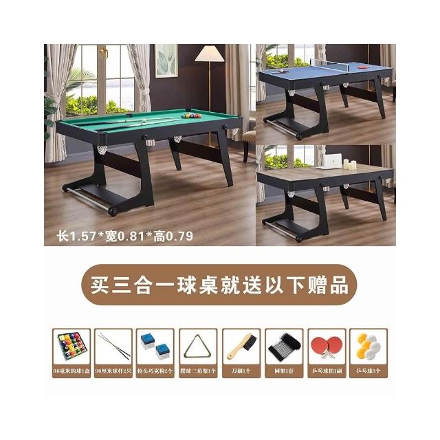 家用可折疊帶輪檯球桌成人兒童3合1室內多功能桌球臺乒乓球桌案子