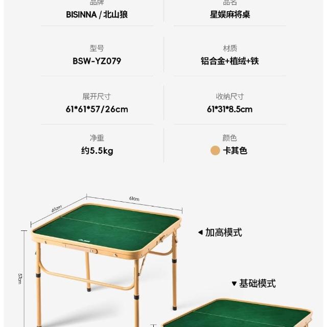 北山狼麻將桌一桌兩用輕鬆便捷露營便攜桌椅休閒娛樂戶外折疊桌子