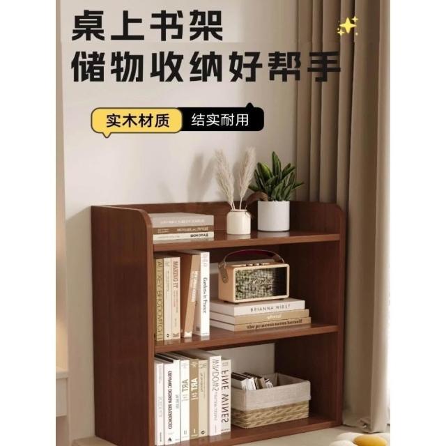 簡易桌上書架學生宿舍桌面收納架辦公桌實木多層置物架書桌小書櫃