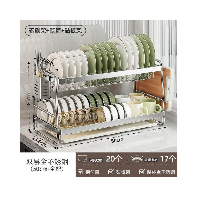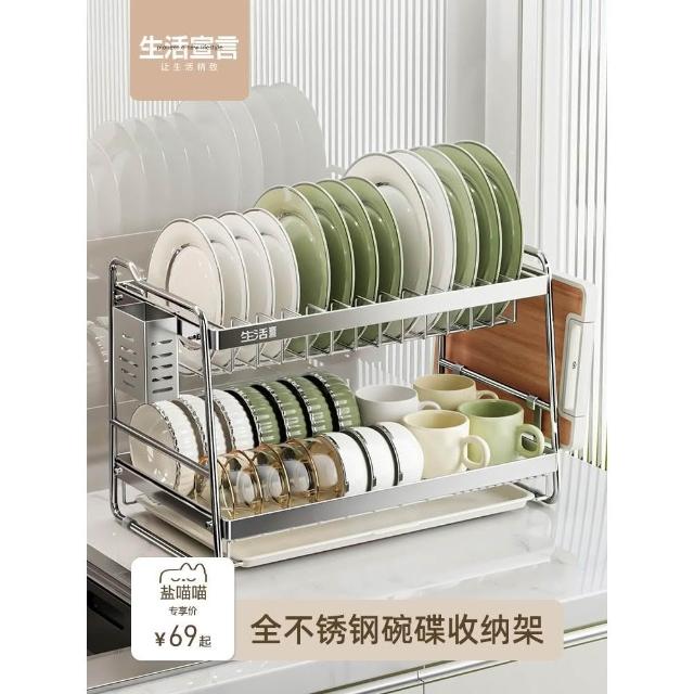 生活宣言不銹鋼碗碟收納架瀝水碗盤架廚房多功能置物架放碗筷收納