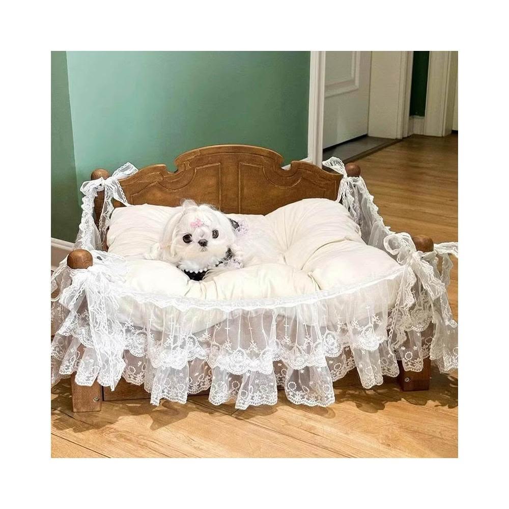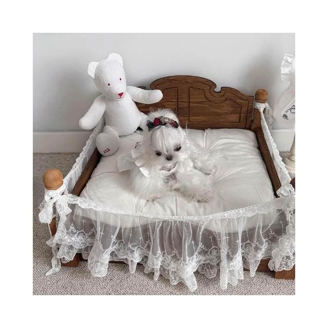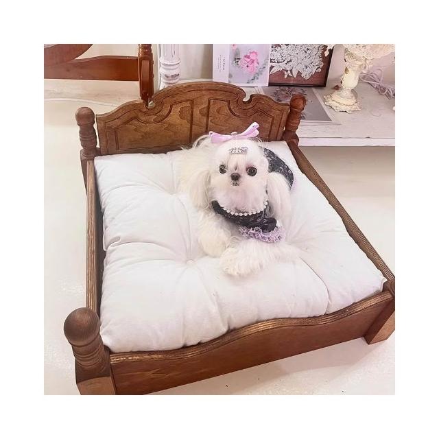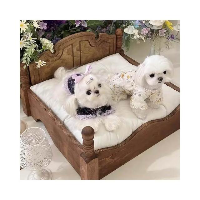 實木復古狗狗公主床小紅書同款寵物床小型犬馬爾濟斯約克夏狗窩