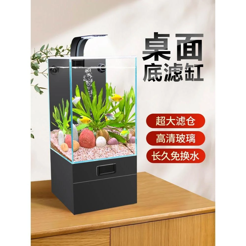 客廳中小型立式底濾魚缸2025新款桌面生態超白玻璃免換水一體櫃缸