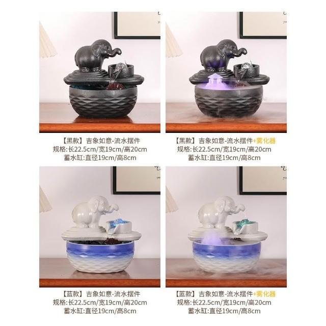 小型陶瓷大象流水擺件迴圈水車風水輪水晶球噴泉招財客廳辦公裝飾